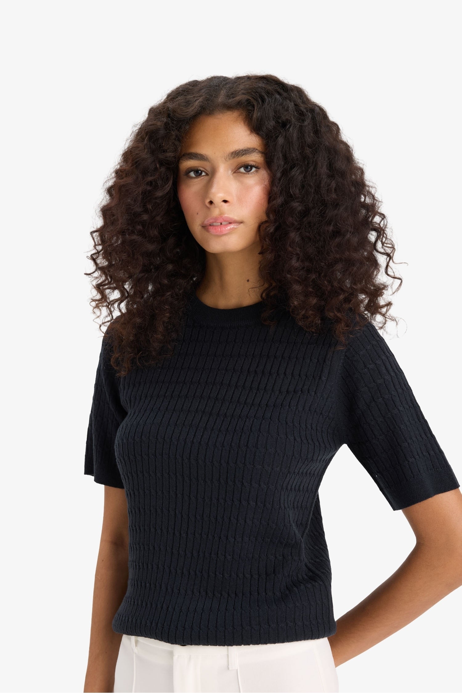 Regular Fit Crew Neck Short Sleeve Knitwear Sweater