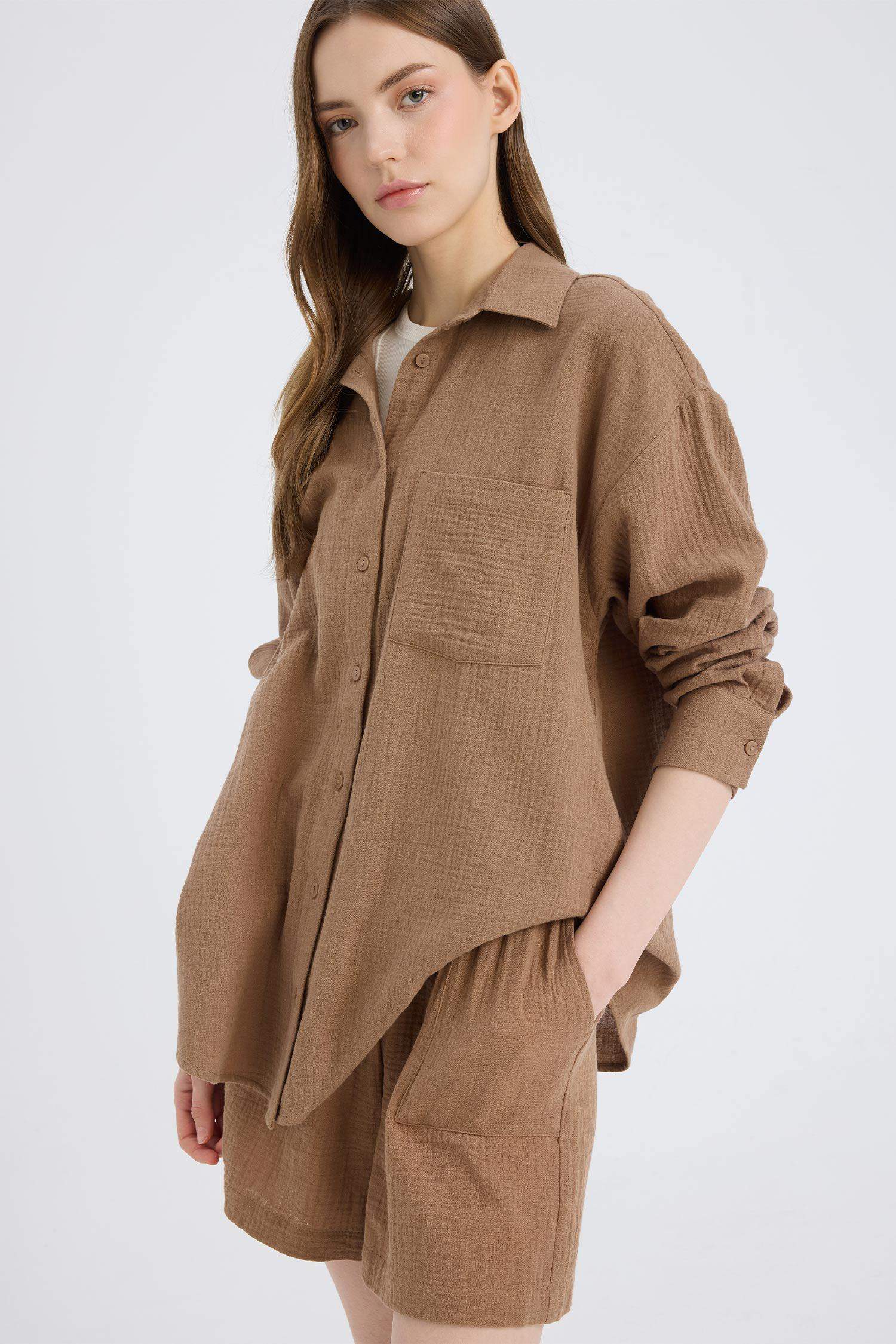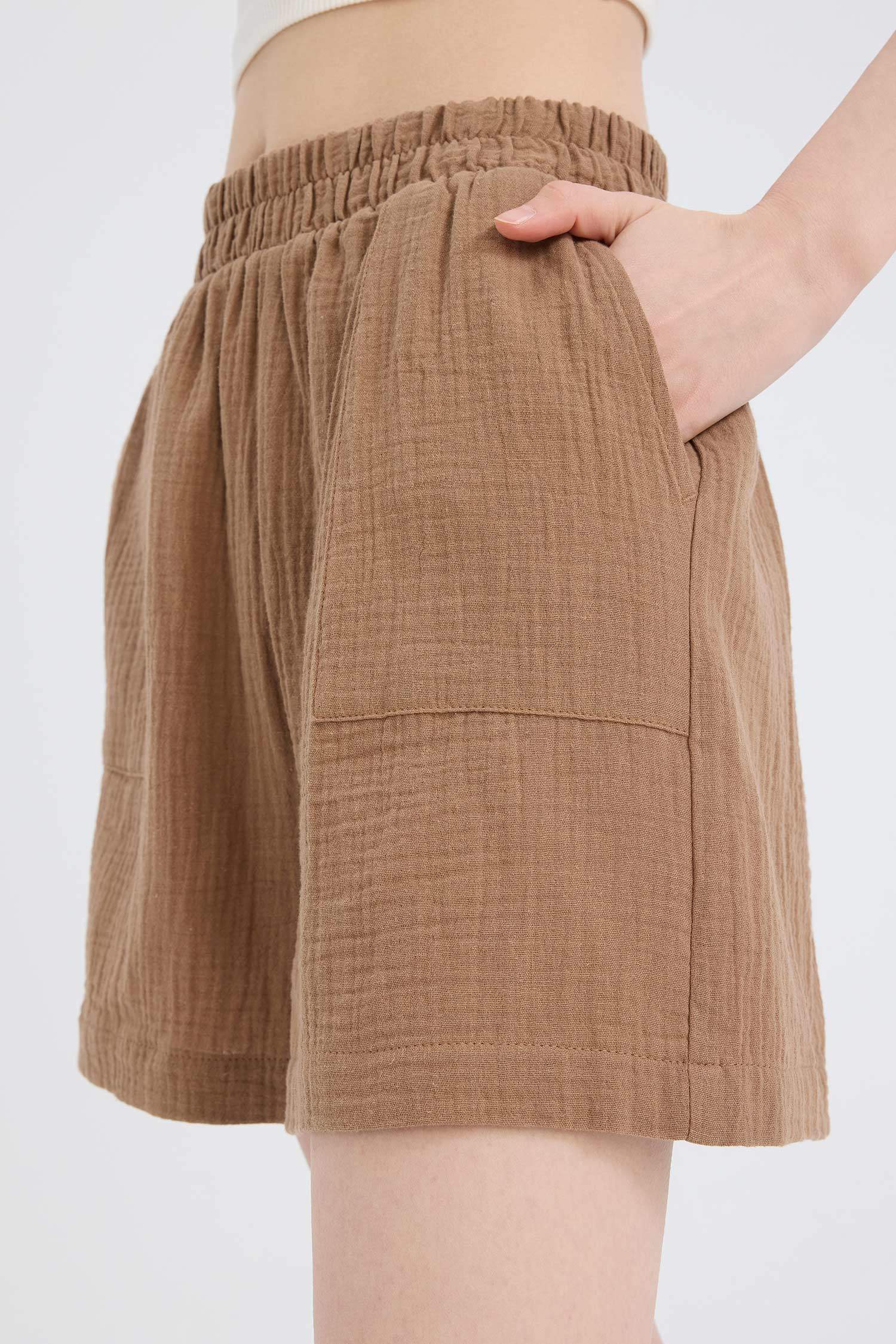 Regular Fit Muslin Elastic Band Short Leg Shorts