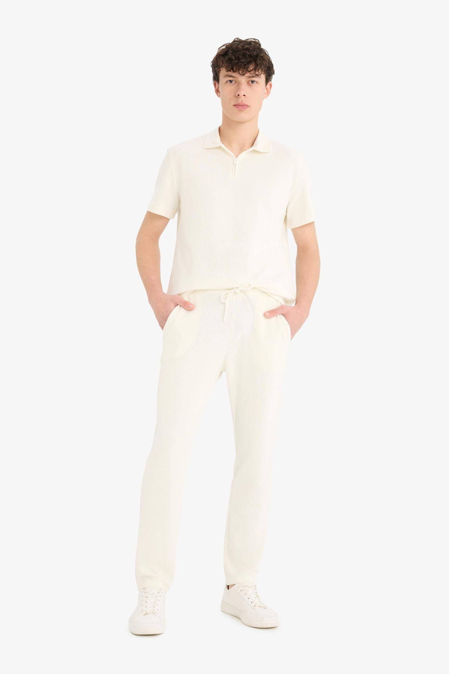 Regular Fit Track Bottom Waisted Lace-Up Pocket Detailed Flat Leg