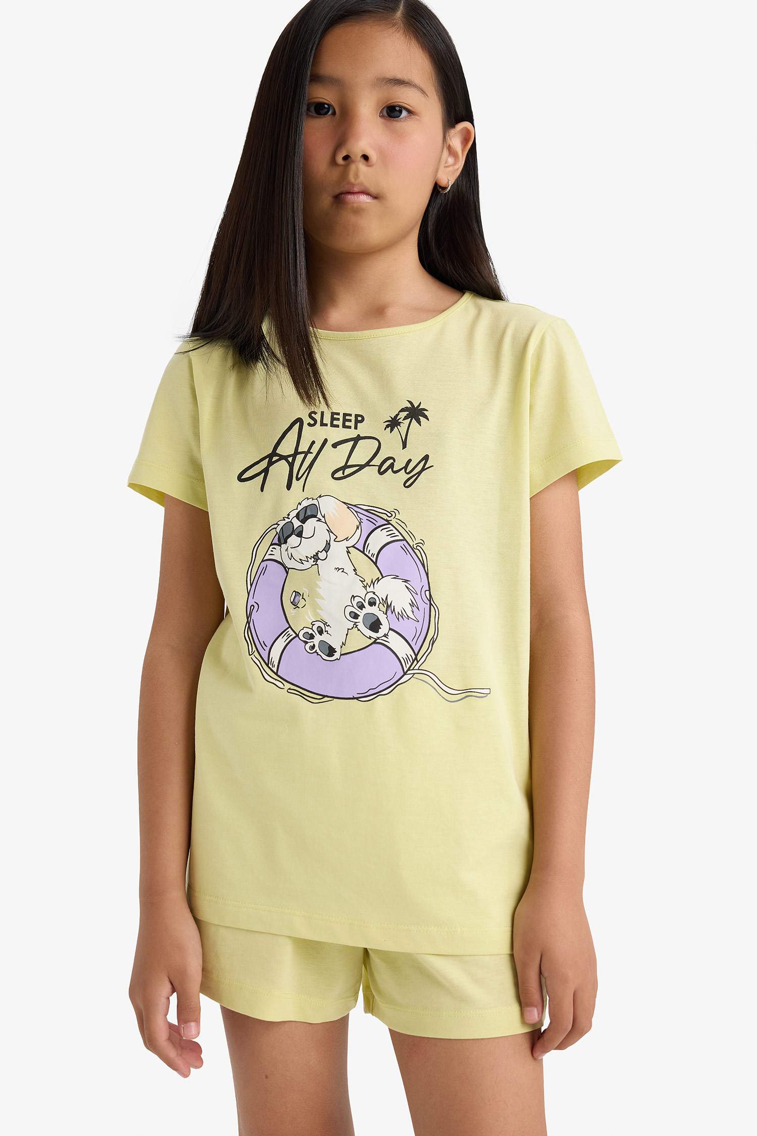 Girls Pajama Set Printed Short Sleeve Top Elastic Waist Shorts