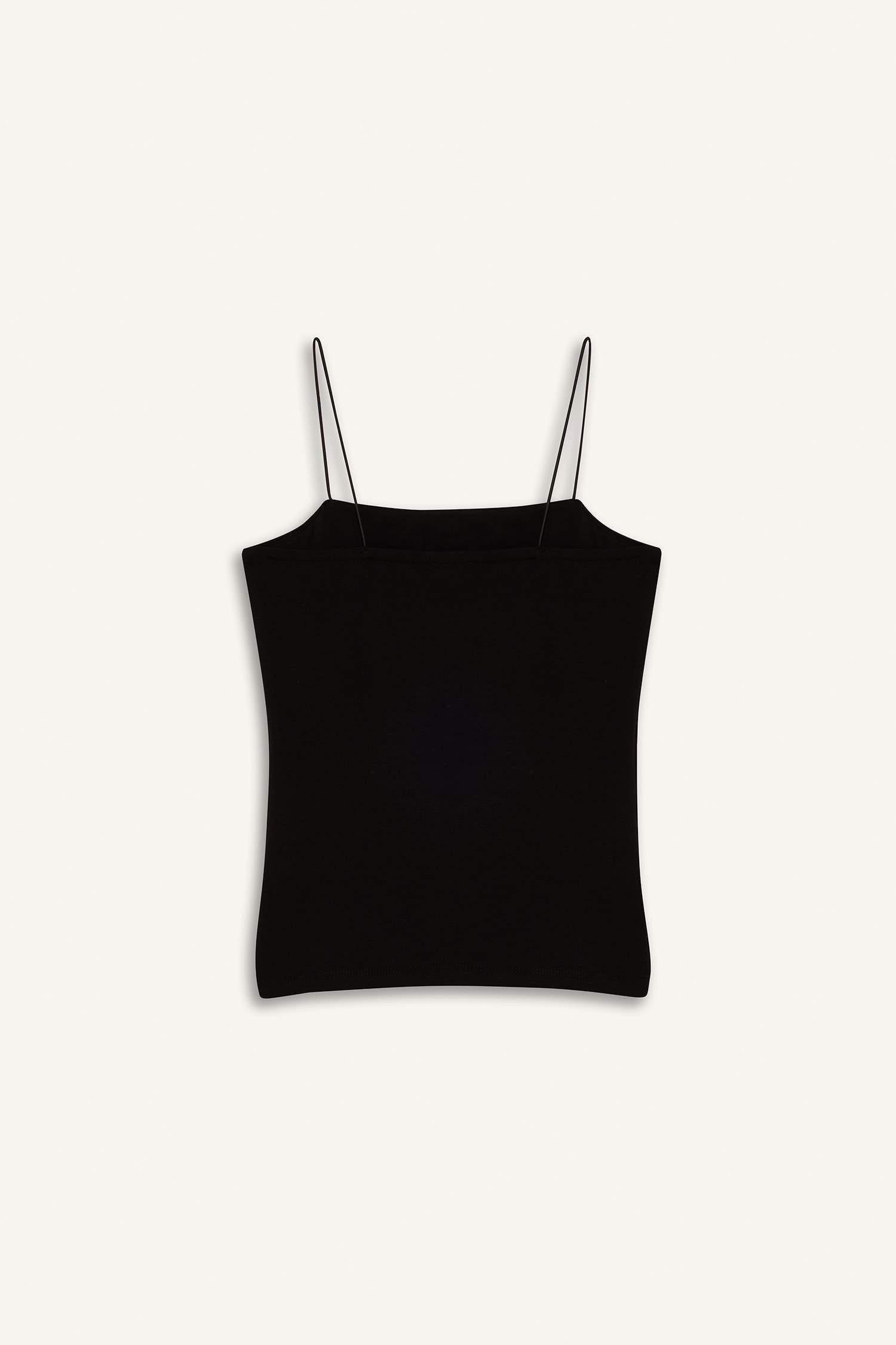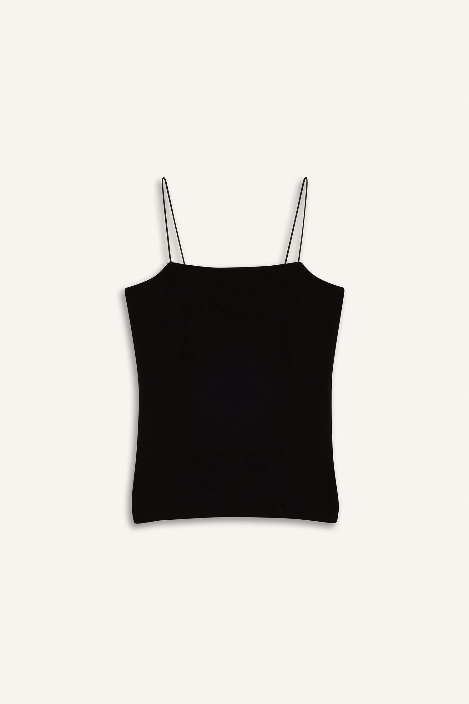 Fitted Square Neck Basic Plain Strappy Tank Top