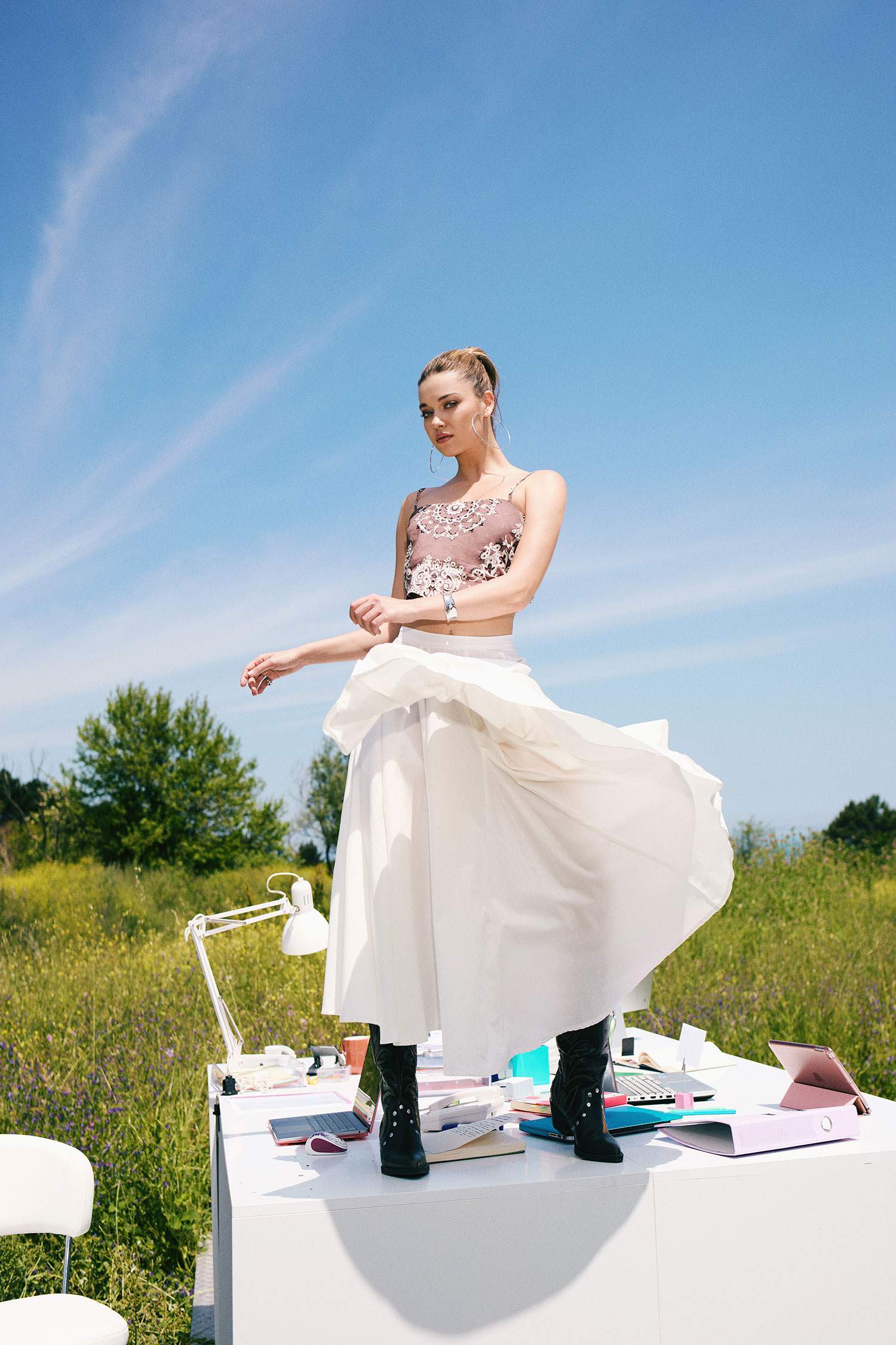 Afra x DeFacto A-Line Normal Waist Lined Poplin Maxi Skirt