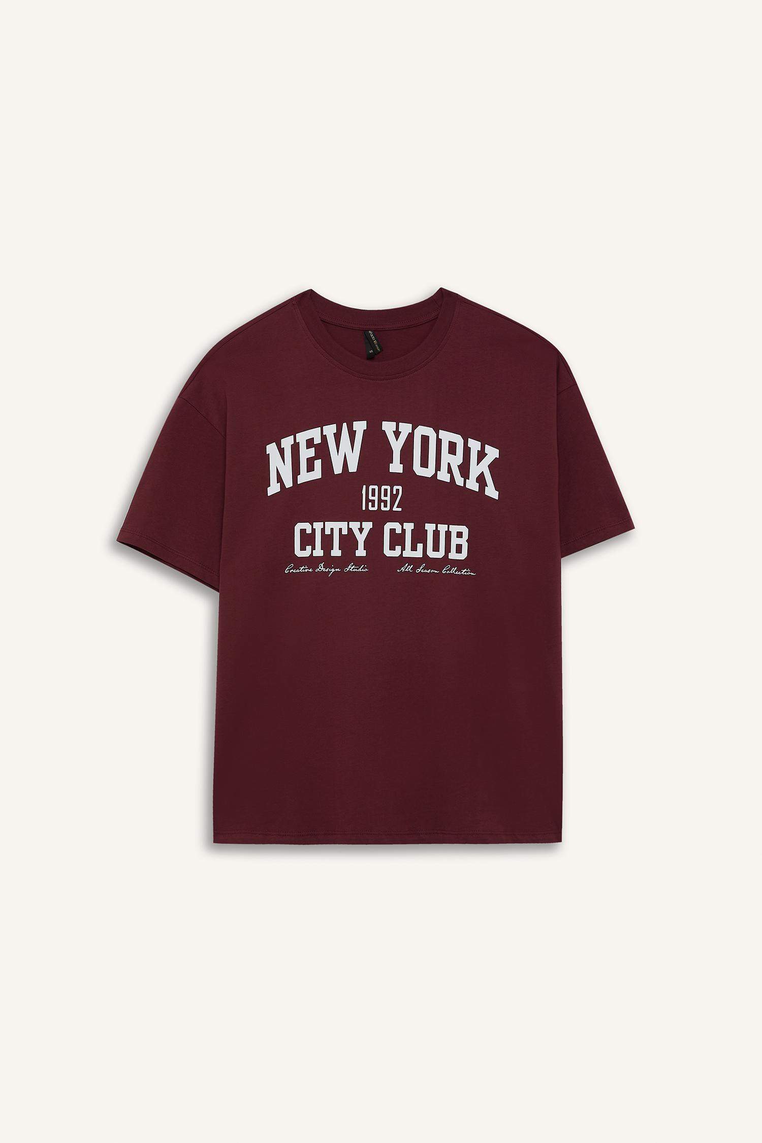 Oversize Wide Pattern Crew Neck Printed Short Sleeve T-Shirt
