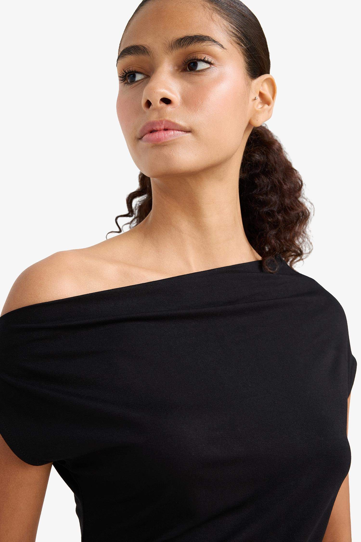 Slim Fit Slim Cut One Shoulder Short Sleeve T-Shirt