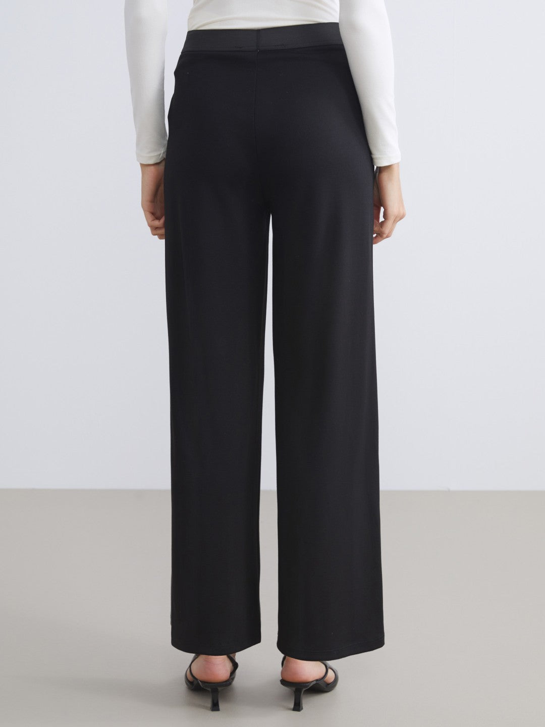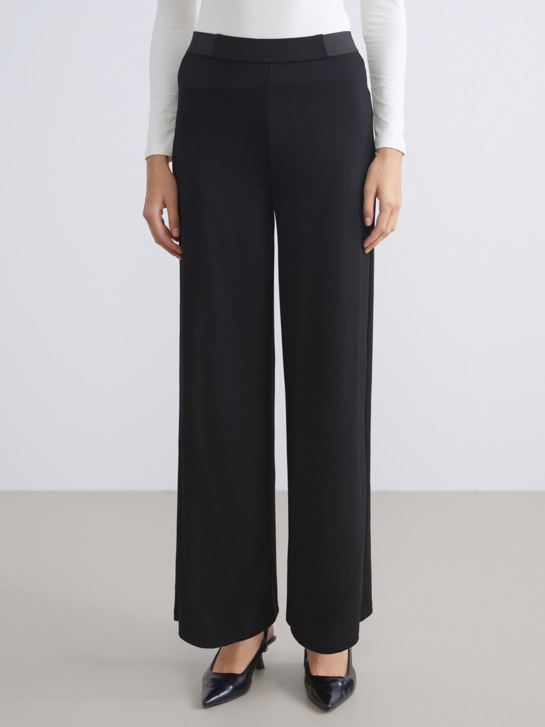 Elastic waist and wide leg Women trousers, is fit standard and is made of interlock fabric