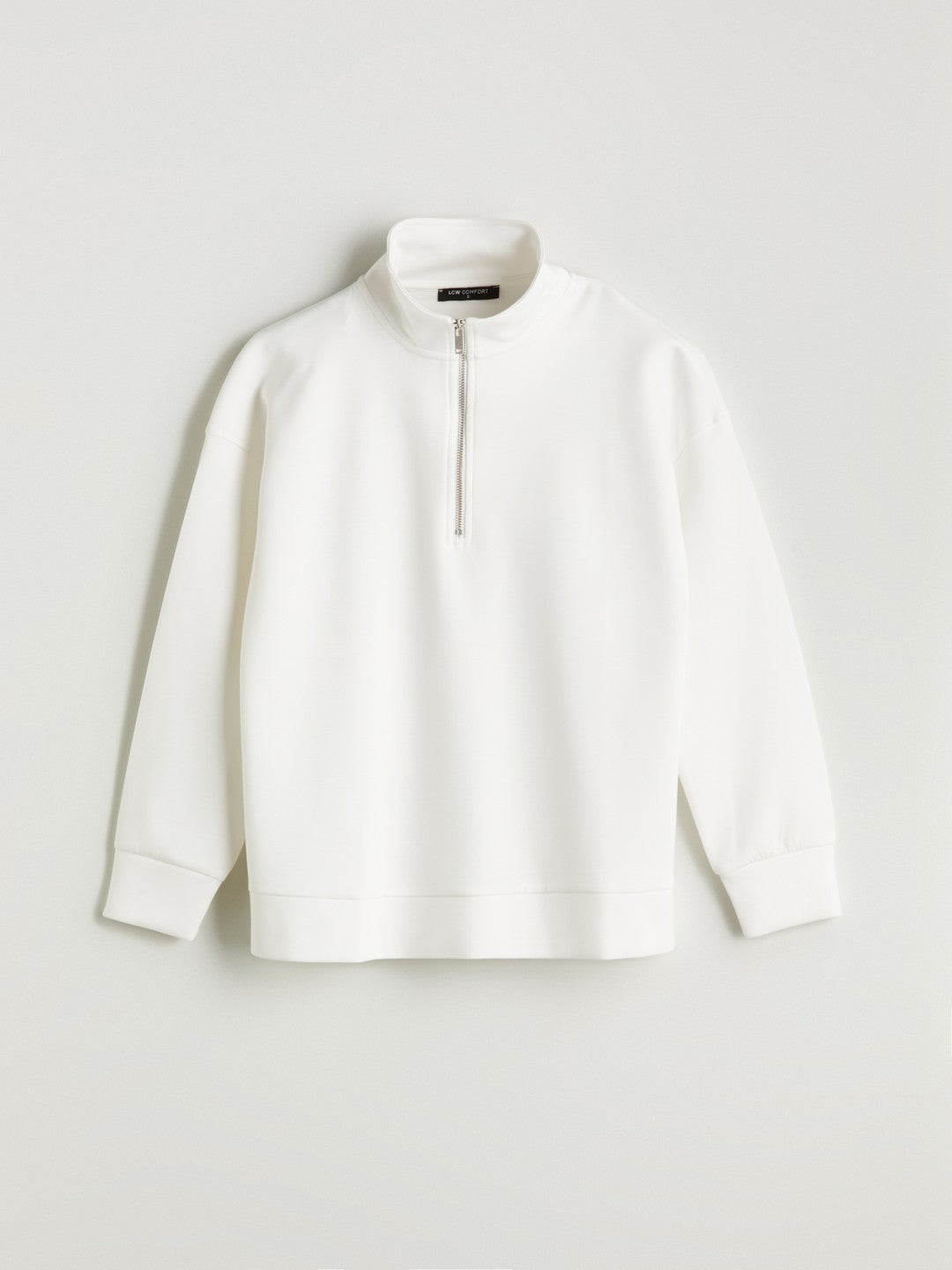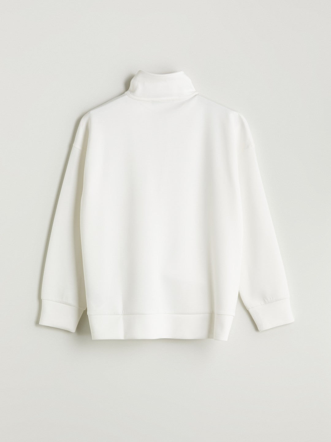 Funnel neck Women sweatshirt is made of interlock fabric The collar has a zipper closure