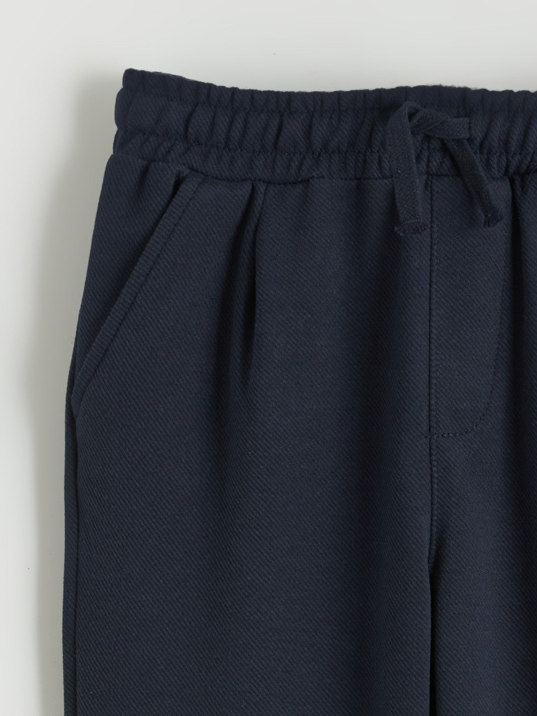 Regular fit Boys trousers, made of polyviscose fabric. Elastic waist and adjustable drawstring, straight leg and has two side pockets.