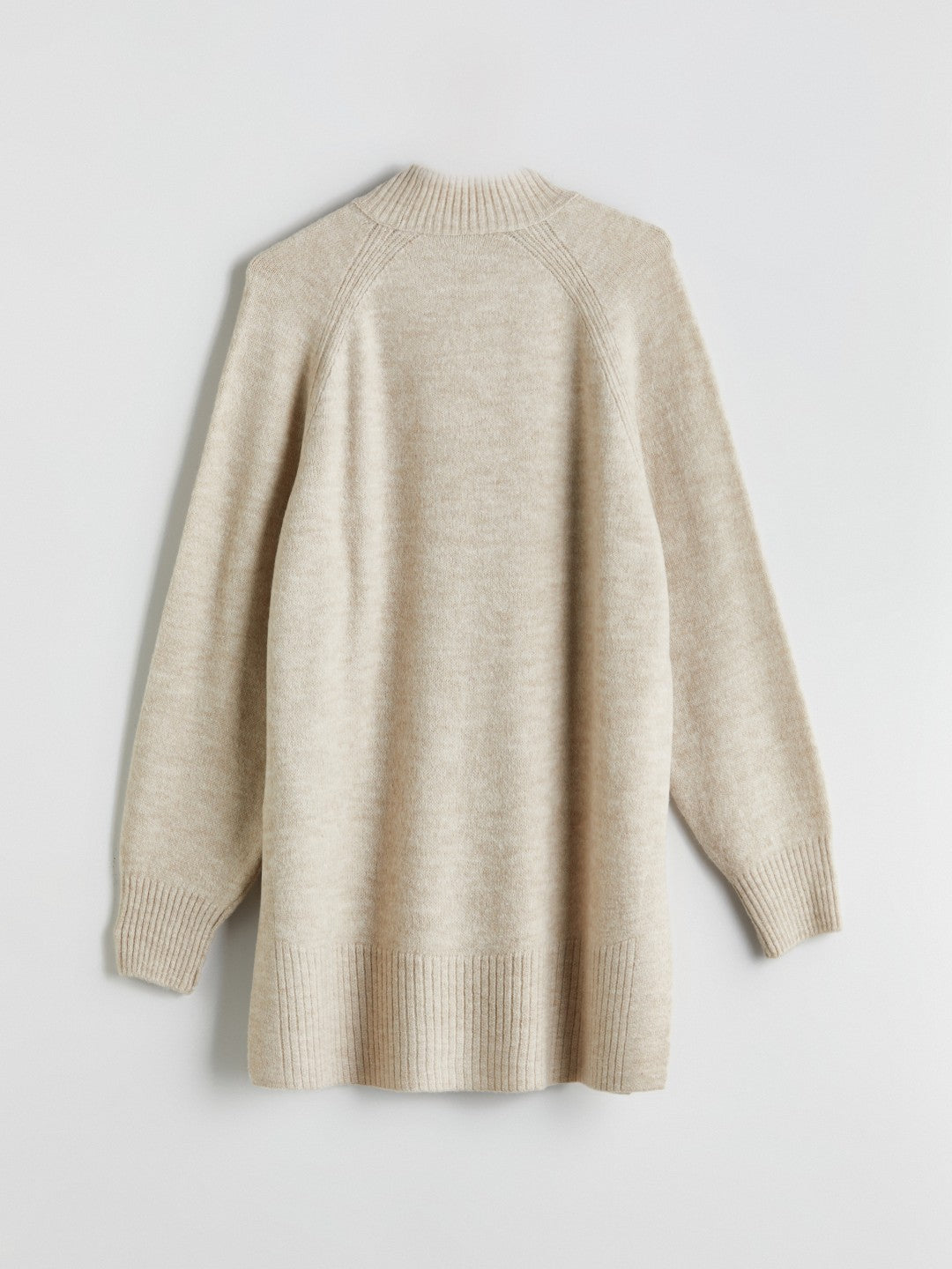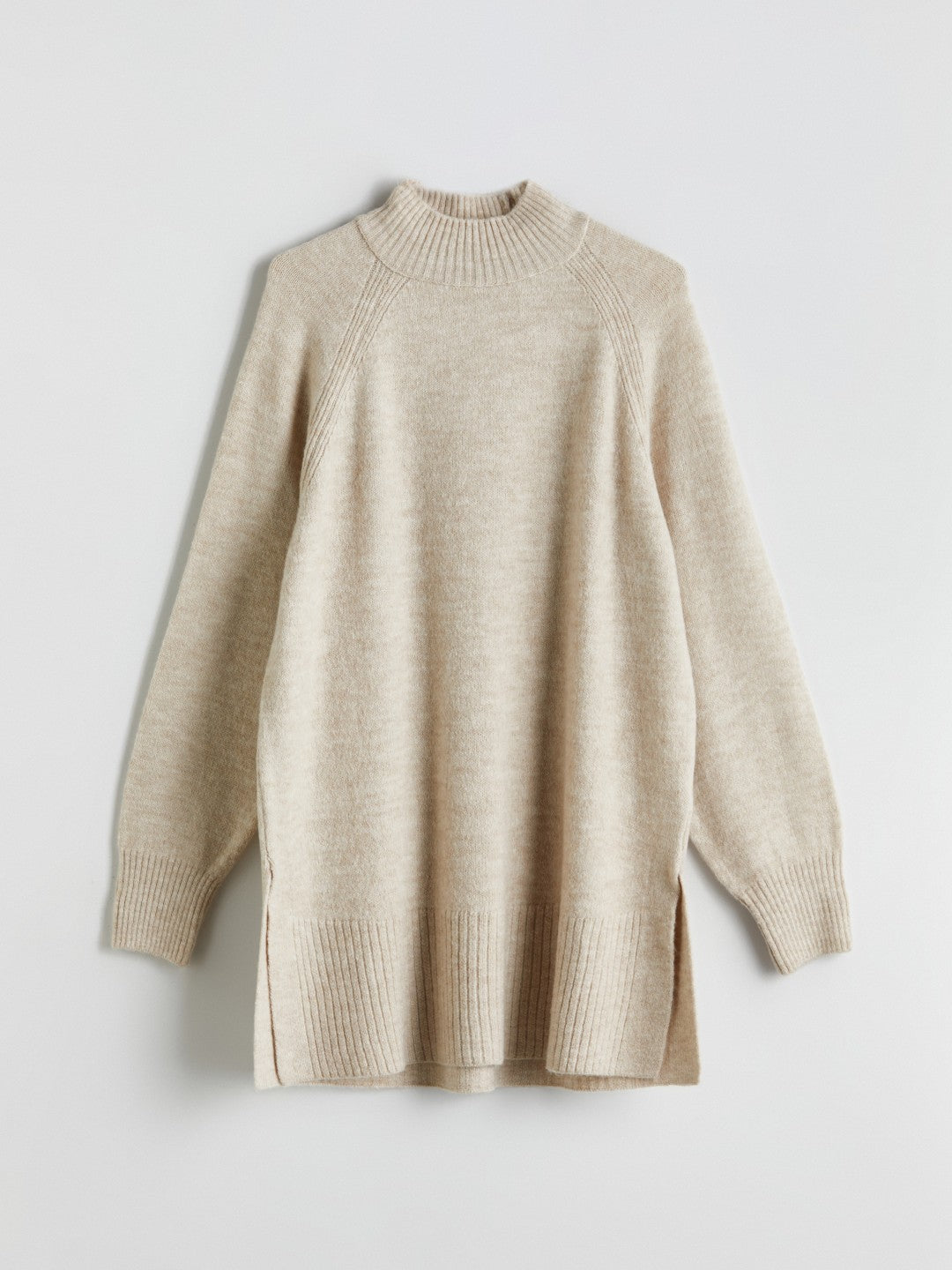 Funnel neck long sleeve women tunic, made of tricot fabric It features a design with slits on both sides