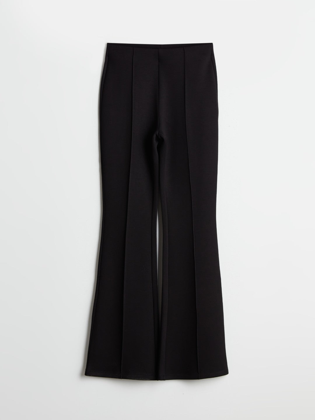 High-waisted Women trousers have a cut that widens towards the hem and feature full-length stitching detail on the front of the legs