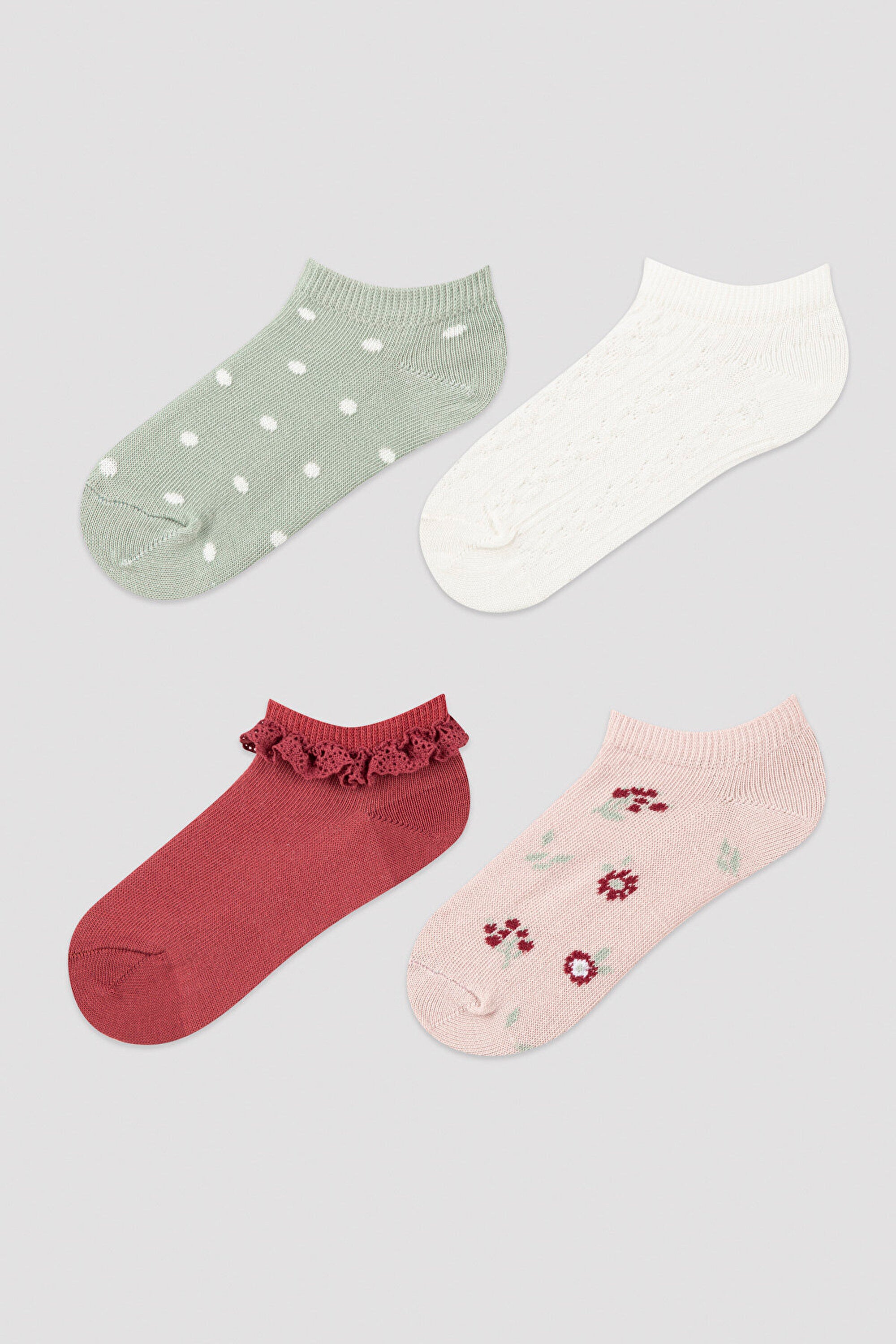 Retro 4-Piece Booties, consisting of four different colors, with a cute ruffle detail on the ankle part and a colorful floral pattern, perfectly fits the girls' style and gives them a cozy and comfortable feeling. Material