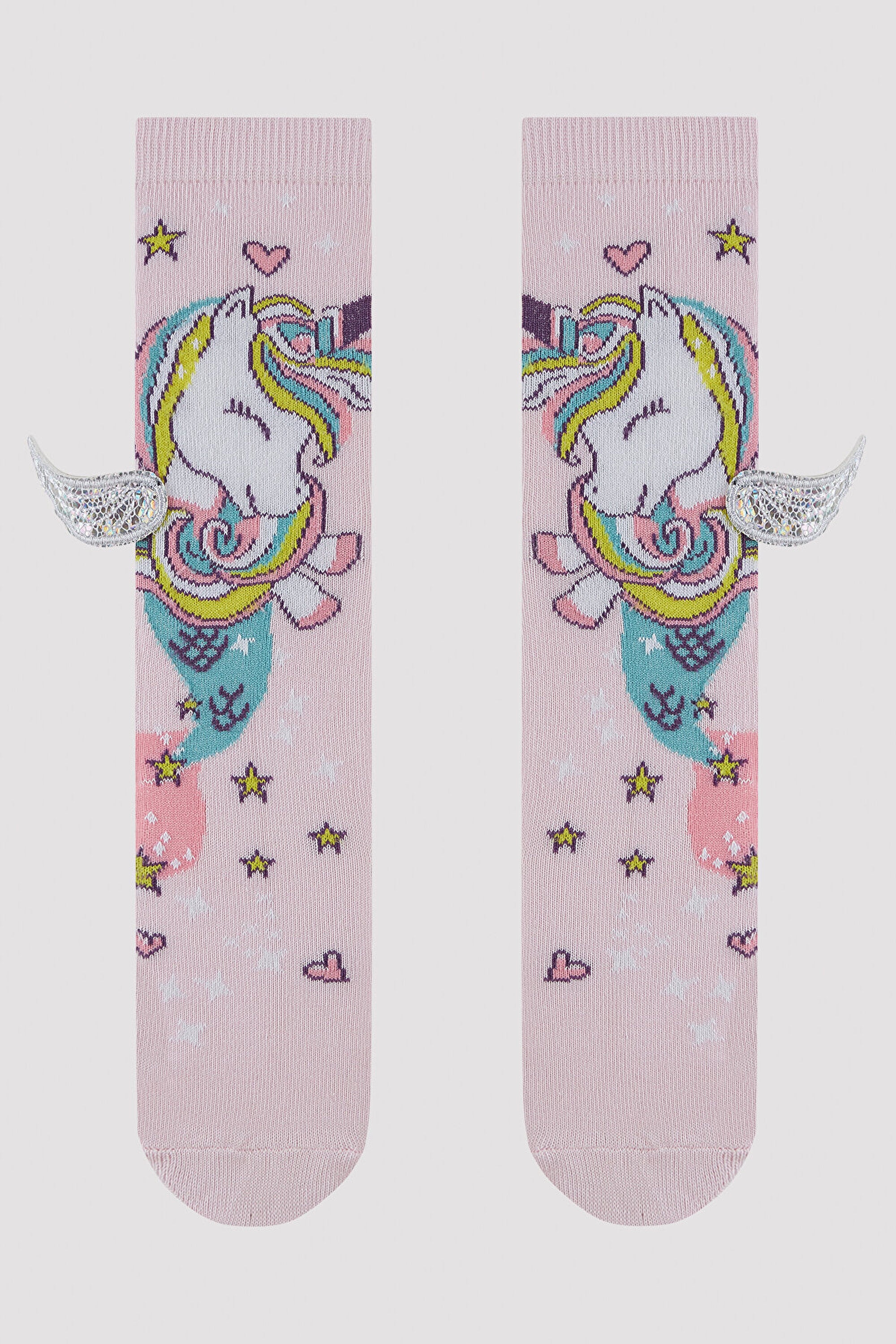 P Wings Unicorn Pnt is an environmentally friendly option prepared with sustainable production principles. It is a package containing one girl's knee-high socks with a unicorn print on a pink background. This unique sock has a striking design with 3D wing details. These socks, which will add color and fun to your child's wardrobe, offer both a comfortable and stylish look. Offer comfort and style to your child's feet with P Wings Unicorn Pnt.