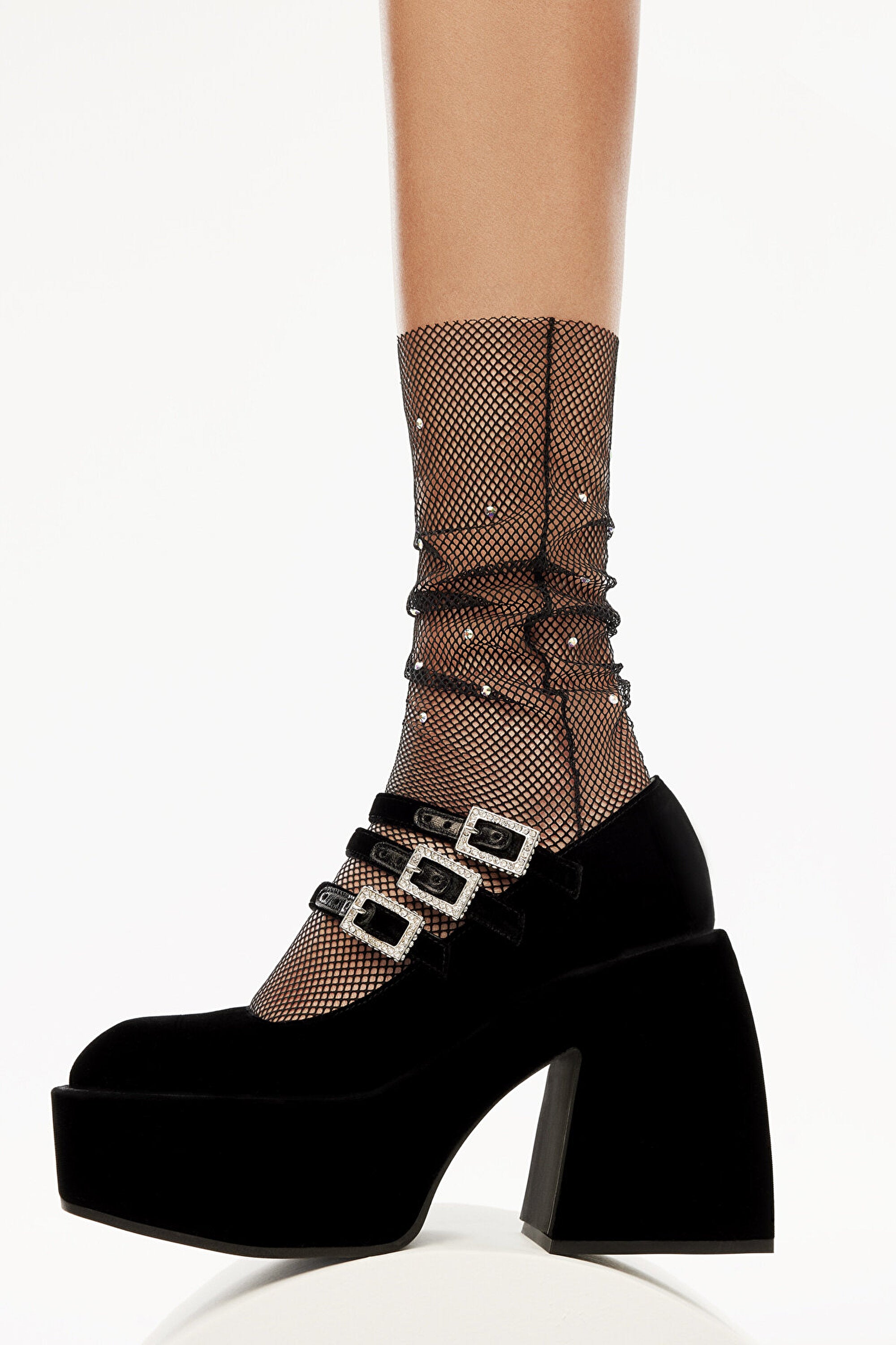 Tasli File Skt, this black colored sock stands out with its stone prints. While the mesh texture provides a uniquely stylish look, it also offers comfortable use. Compatible with all kinds of combinations, these socks can be preferred both for daily use and on special occasions.