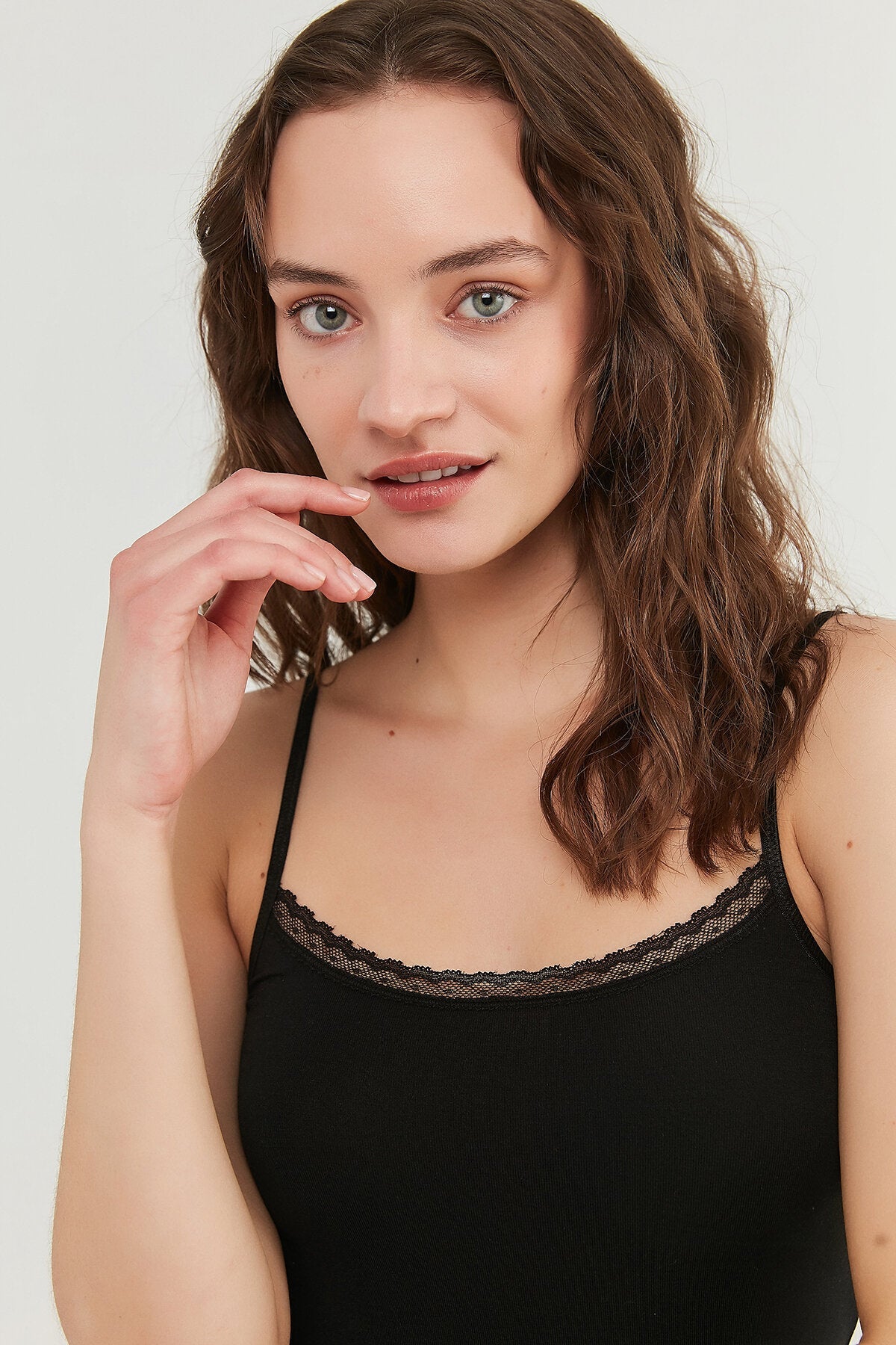 Modal Thin Strap Undershirt, knitted with modal yarn, has a soft touch, provides wearing comfort even in hot and humid climates thanks to its moisture transfer feature, and offers comfort with its thin straps and soft texture. Material