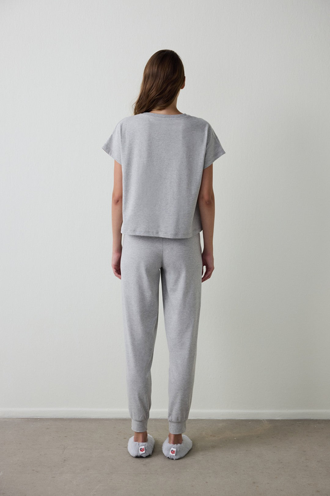 Gray Melange Tom & Jerry Printed Short Sleeve Pajama Set Cotton
