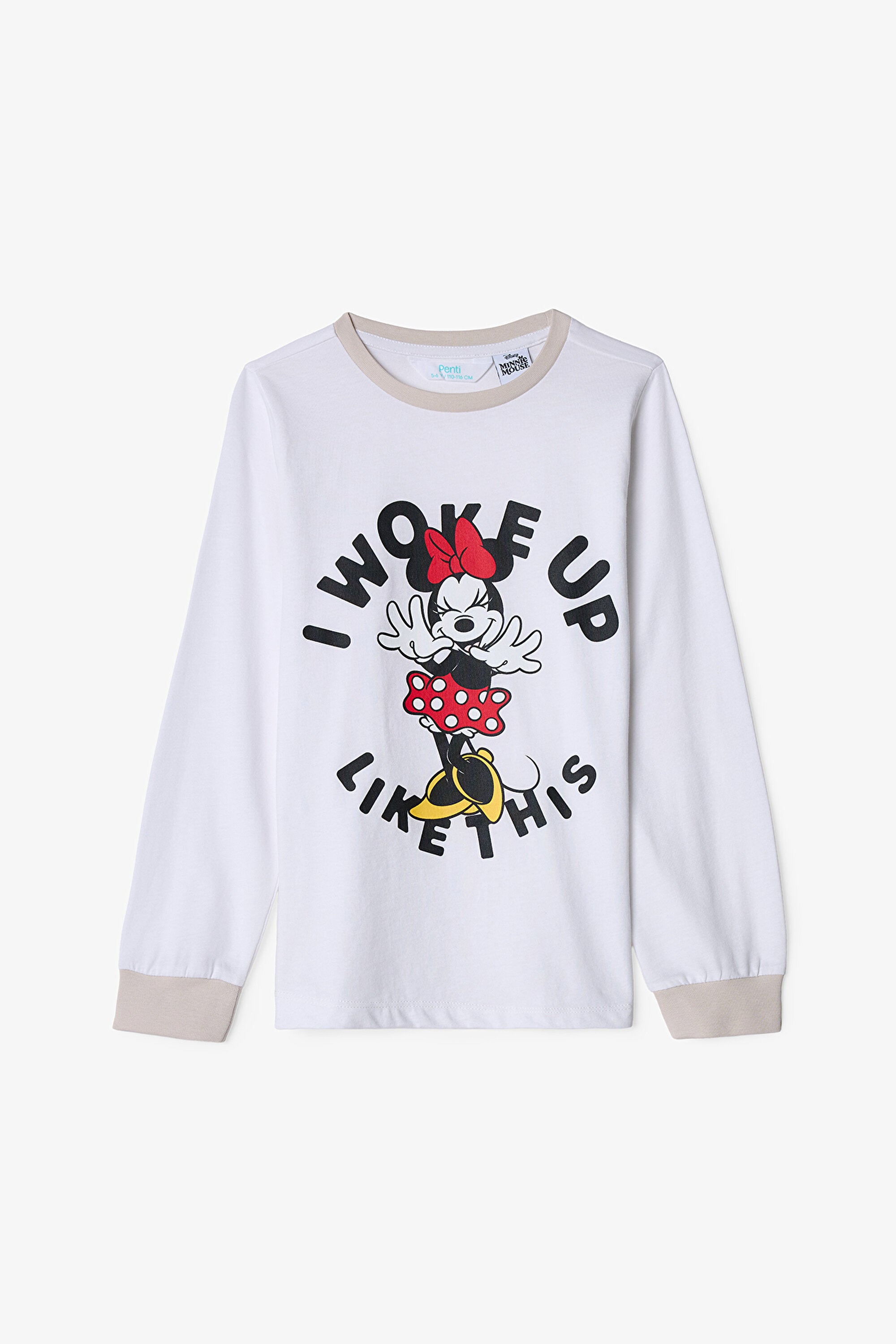Optic White Girls Minnie Mouse Cotton Long Sleeve 2-Piece Pajama Set