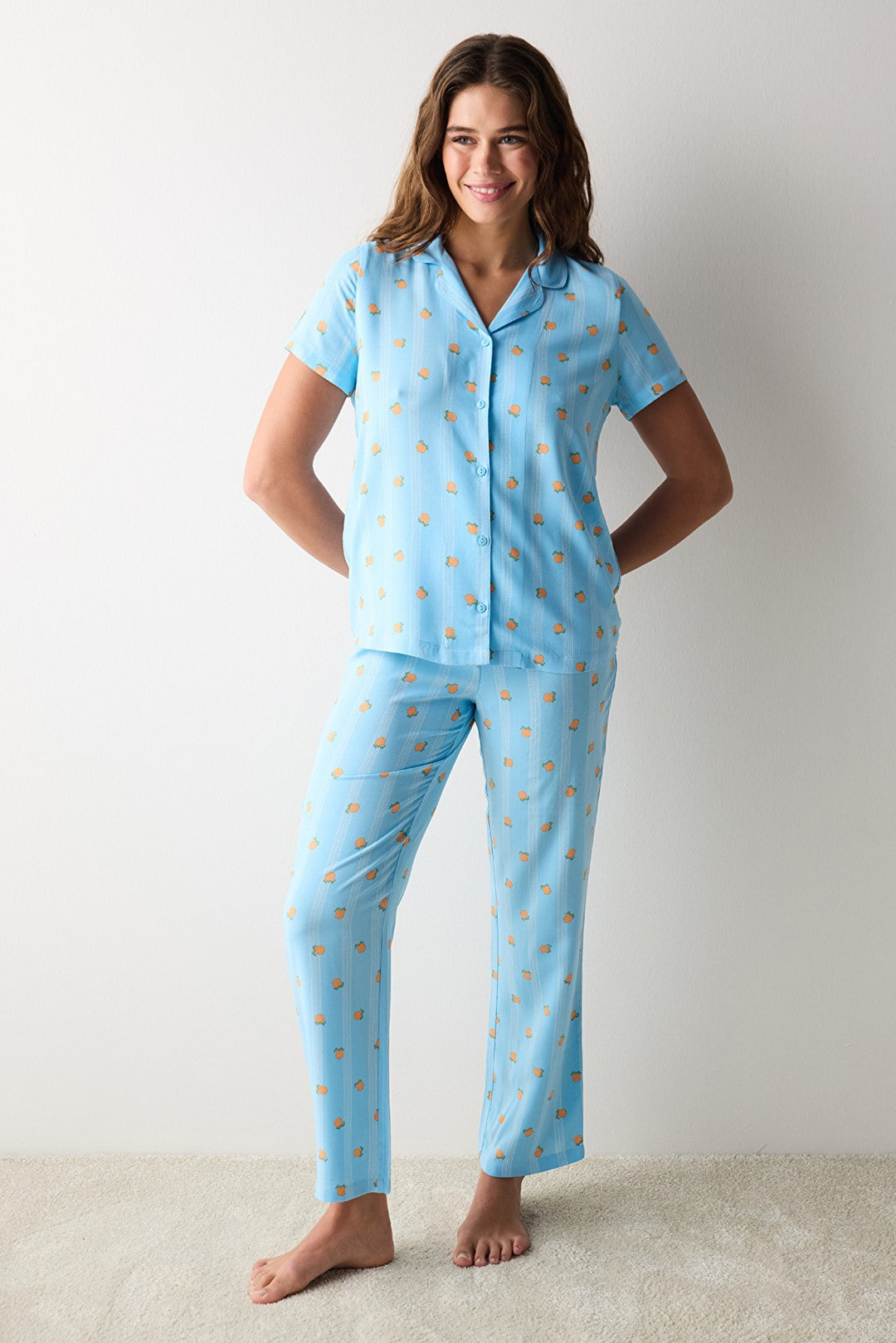 Ent Fruits SS Shirt Pants Set offers both a fun and comfortable pajama experience. Its vibrant colors and cute fruit patterns add joy to your sleep, while its fabric provides uninterrupted comfort. Its shirt and pants are designed for comfortable moments at home. Being offered for sale as a set makes it easier to achieve a harmonious look. With its fun design, it is an ideal choice for those looking for comfort while resting at home.The size of the model in the image