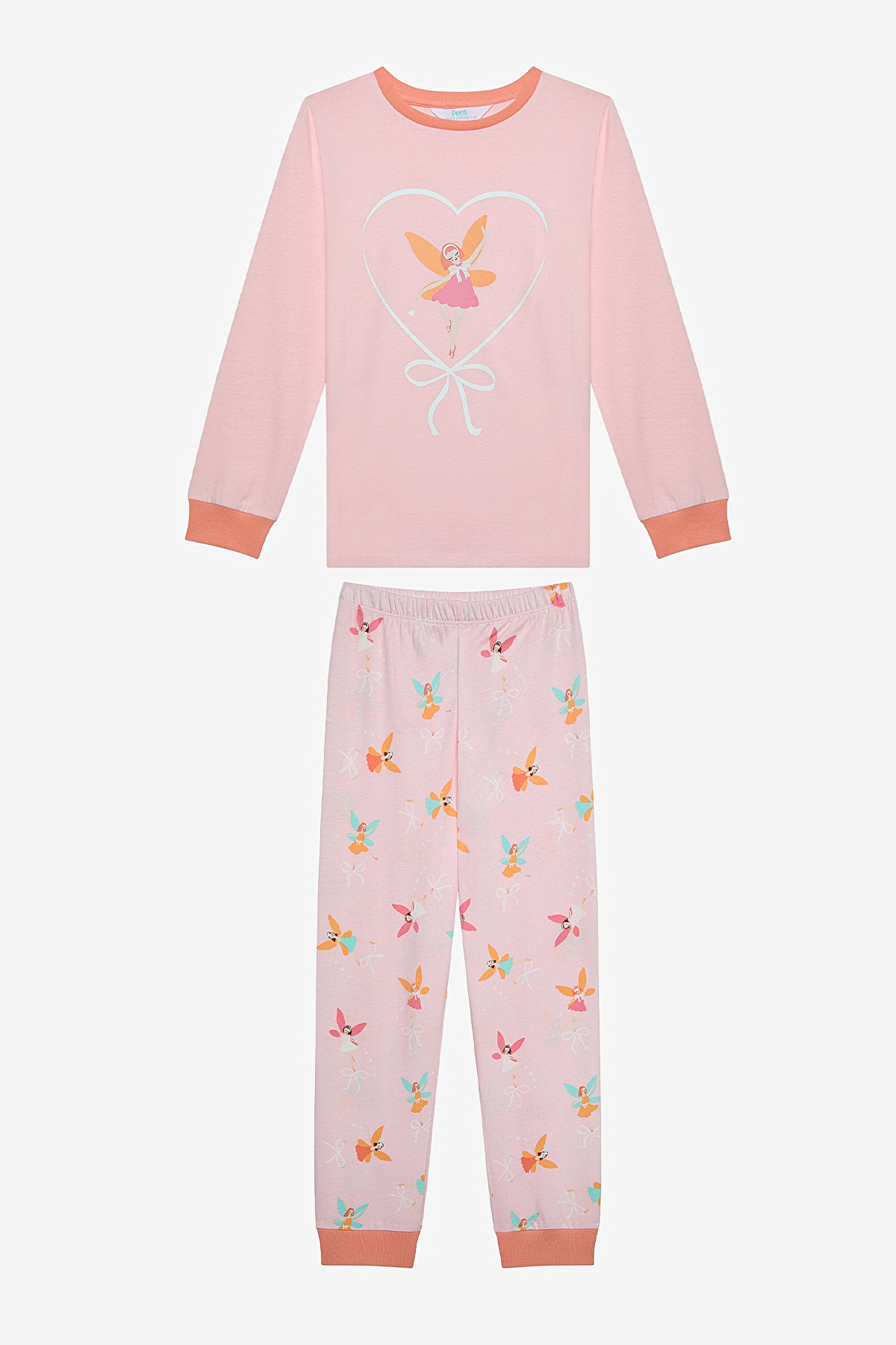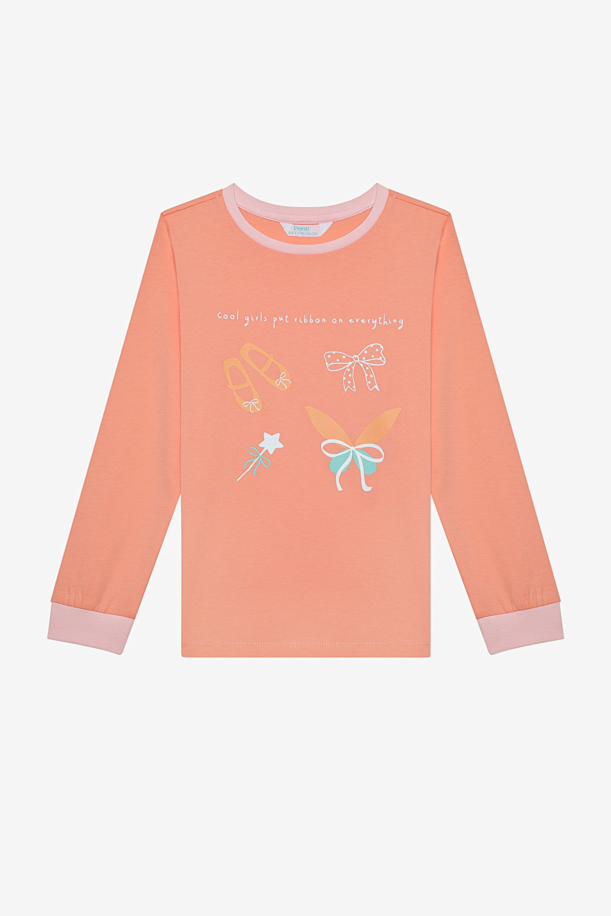 Put On Ribbon Ls 2-Piece Pajama Set, designed for girls, offers both a stylish and comfortable sleeping experience. The pink background in the first pajama set carries the fairy girl with the cute heart figure. The second set exhibits an energetic look with its pomegranate color. Enriched with ballerina, ribbon, fairy wand and winged ribbon figures, this set strengthens the imagination of little girls. It allows comfortable movement thanks to its comfortable cut. Sleeping hours become enjoyable with this colorful and fun pajama set. Buy now and take the first step towards your journey to the world of dreams!Material