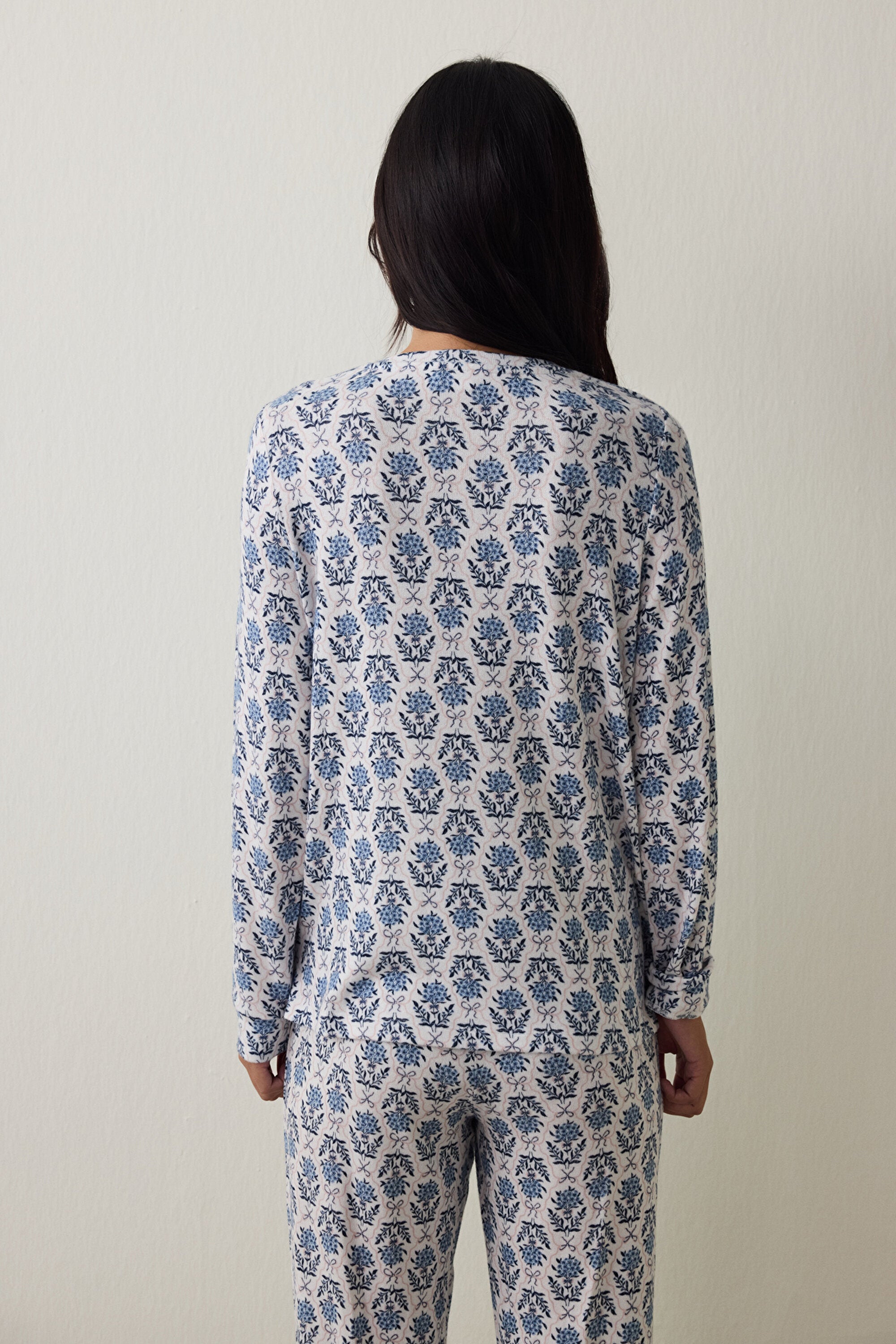 Flower Printed Tea Time Thermal Effect Sweatshirt Pajama Top
