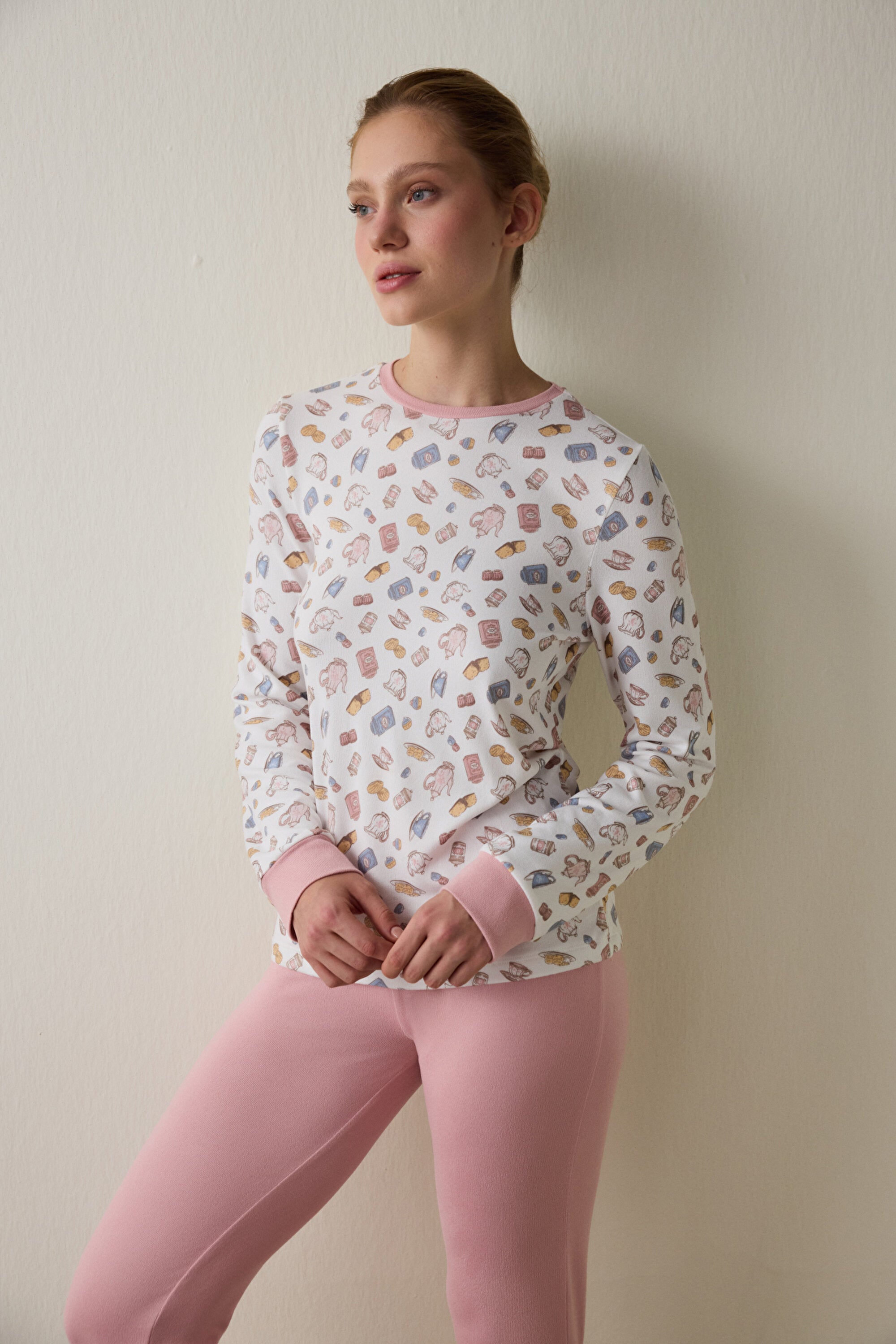 Tea Party Printed Crew Neck Long Sleeve Pajama Top