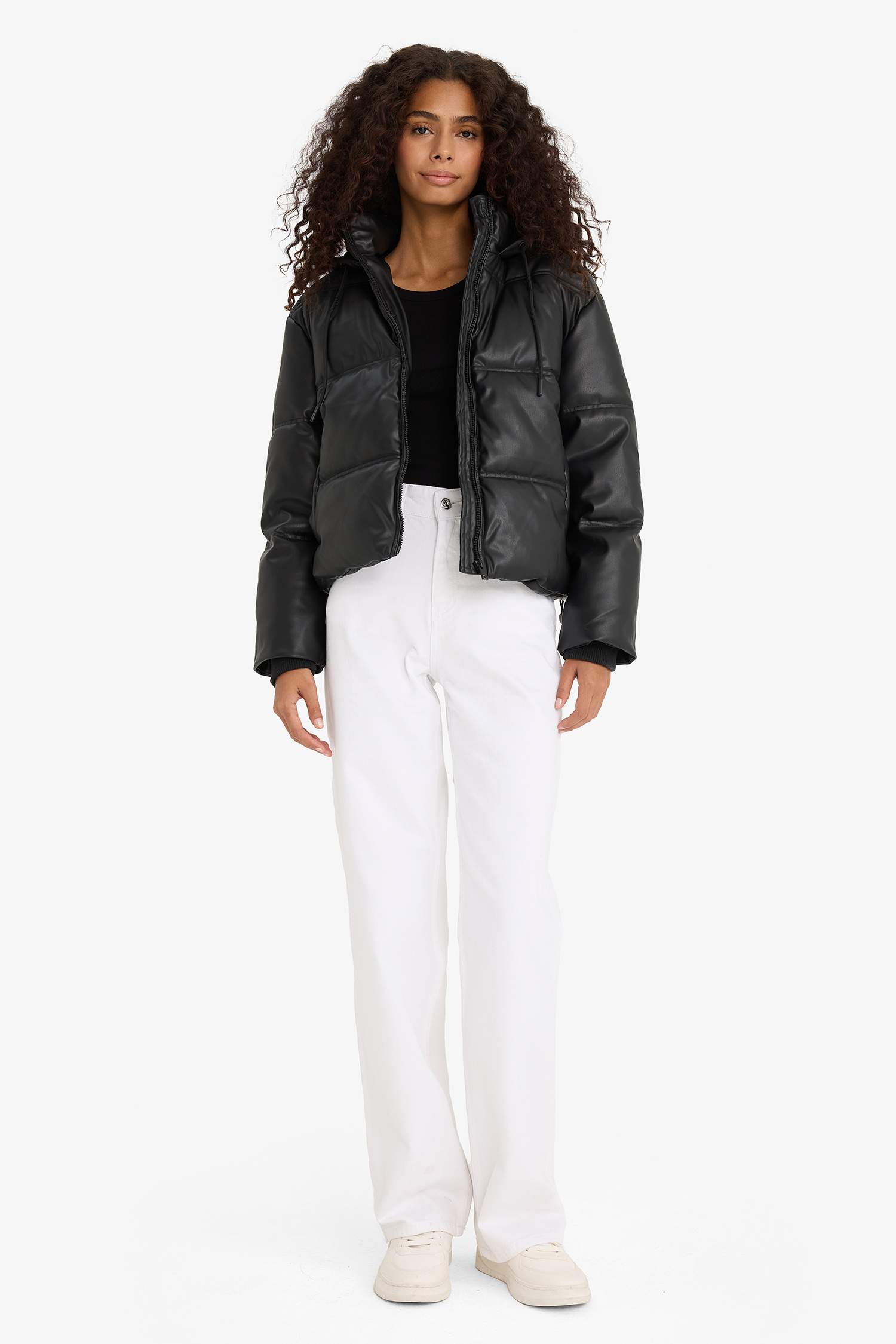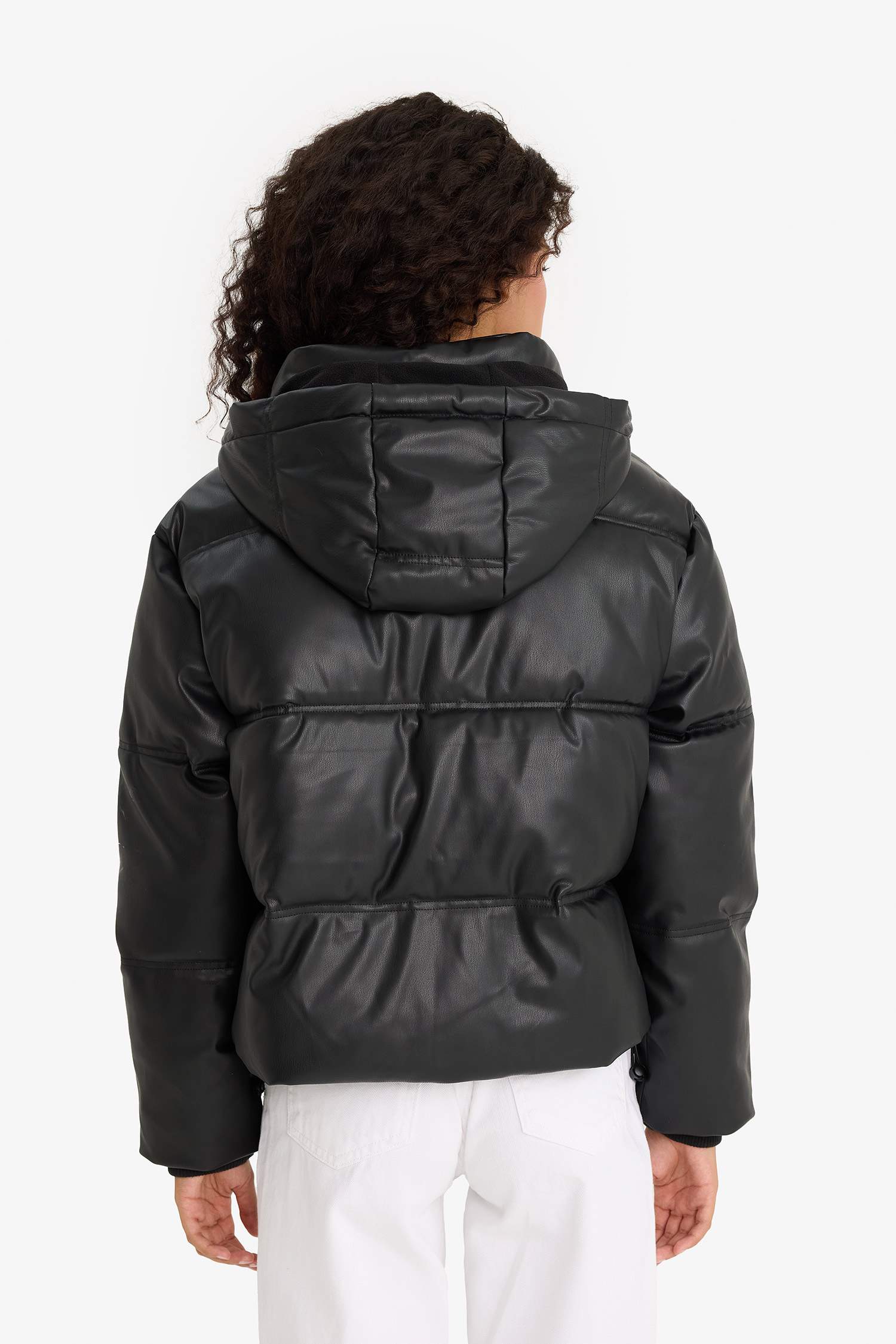 Regular Fit Hooded Fleece-Lined Faux Leather Jacket