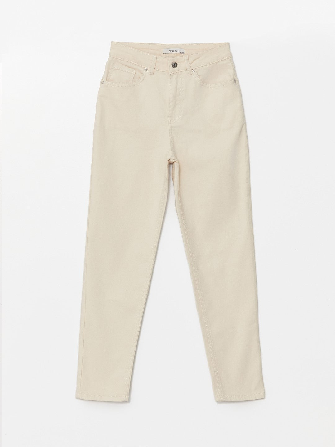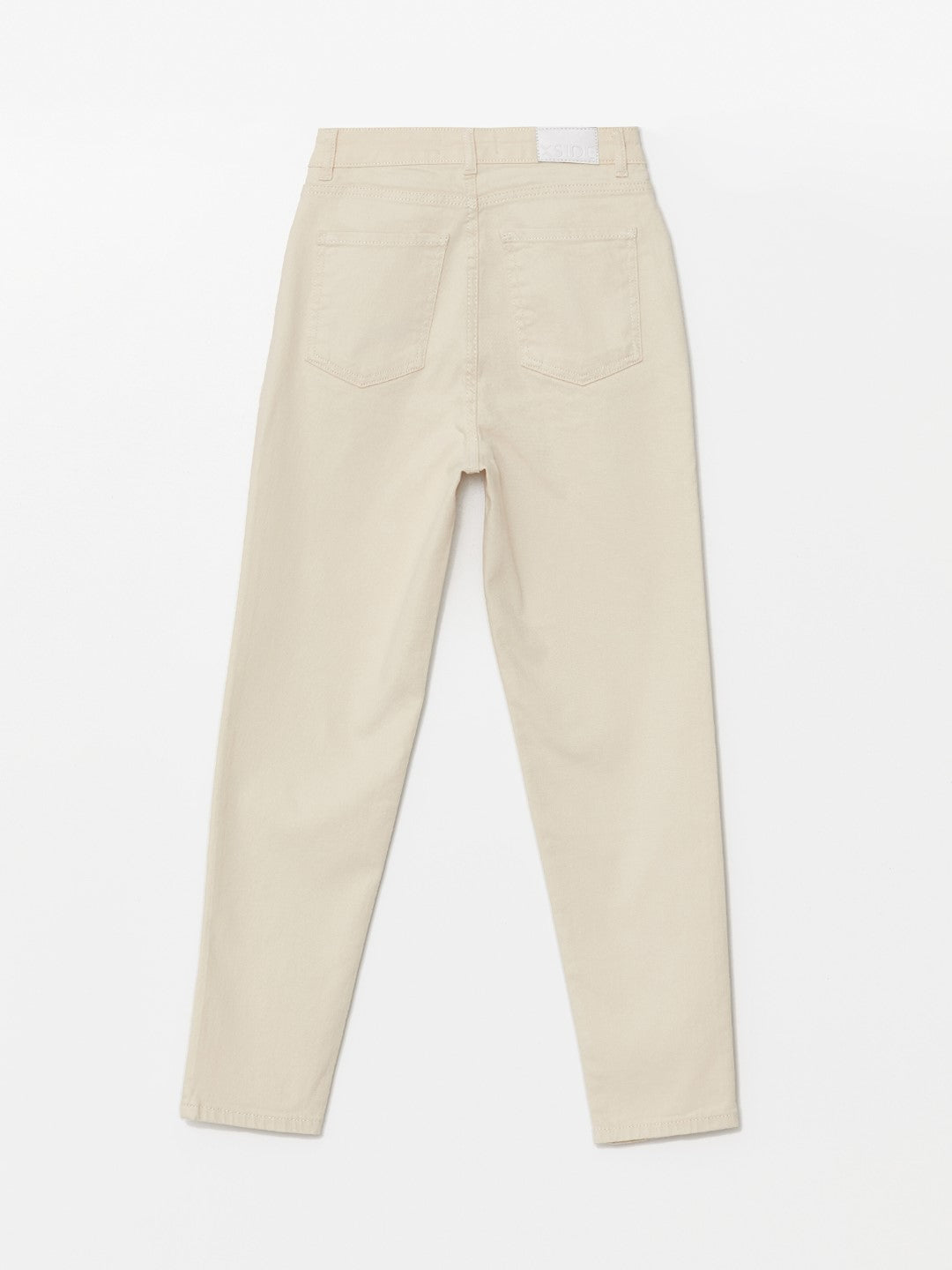 Mom fit; It narrows from the waist to the ankles and has a comfortable cut in the hip area. It provides comfort and freedom of movement all day long with its design that brings 90's fashion to the present day.