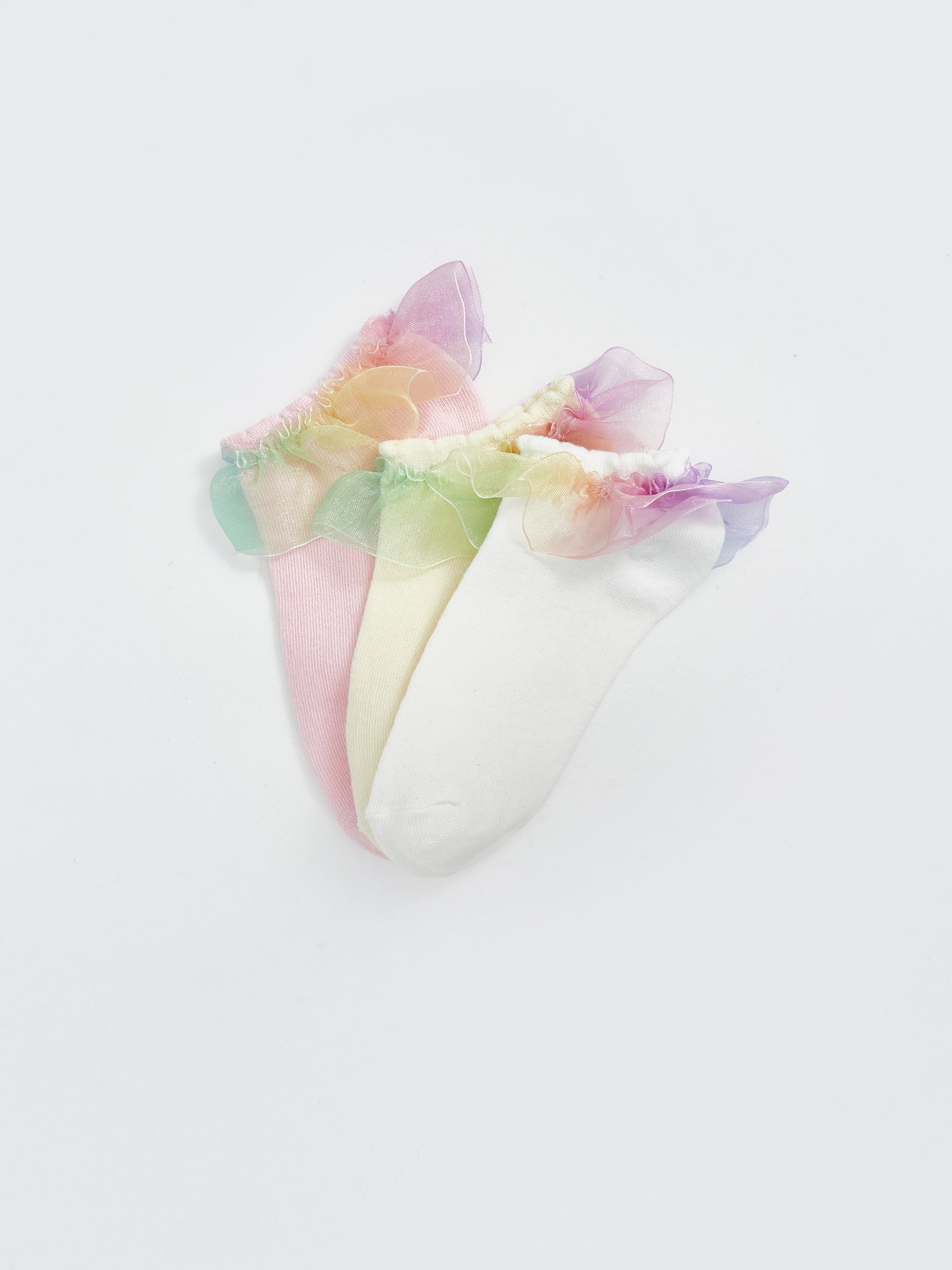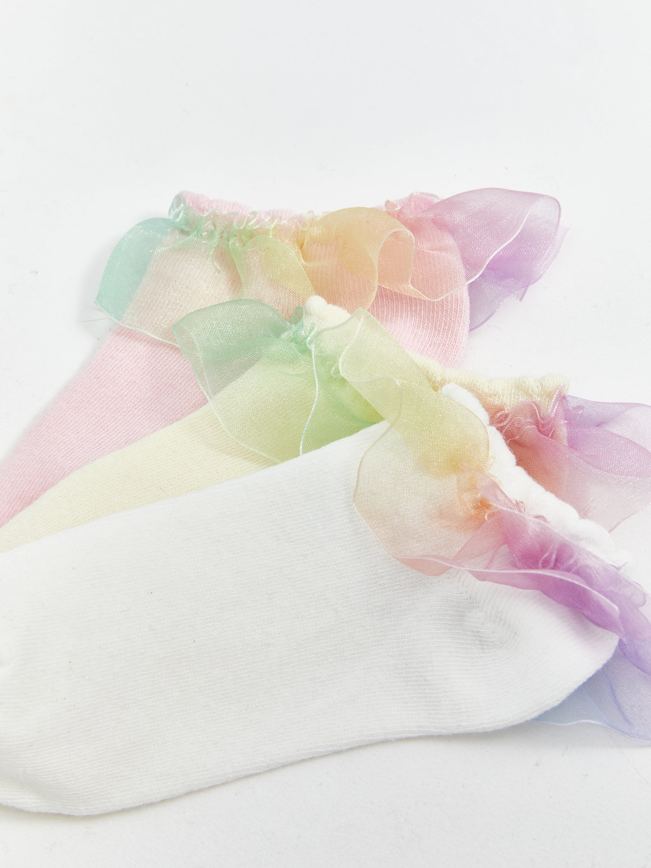Tulle Detailed Girls Booties Socks 3-Pack