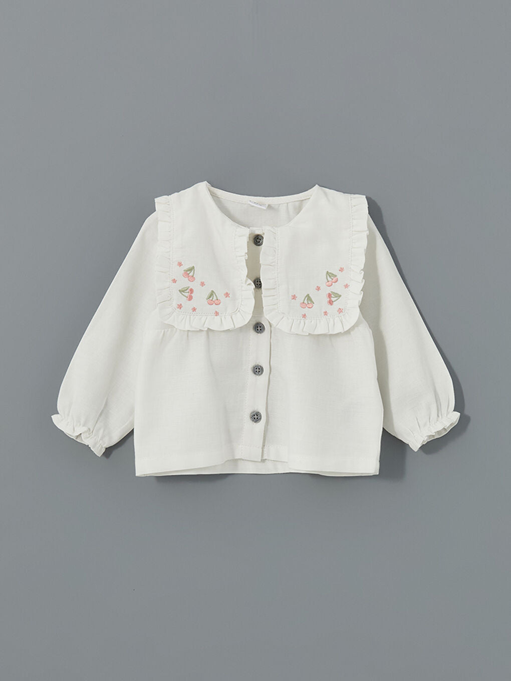 LCW baby Ecru Crew Neck Embroidered Baby Girl Shirt and Tights 2-Pack