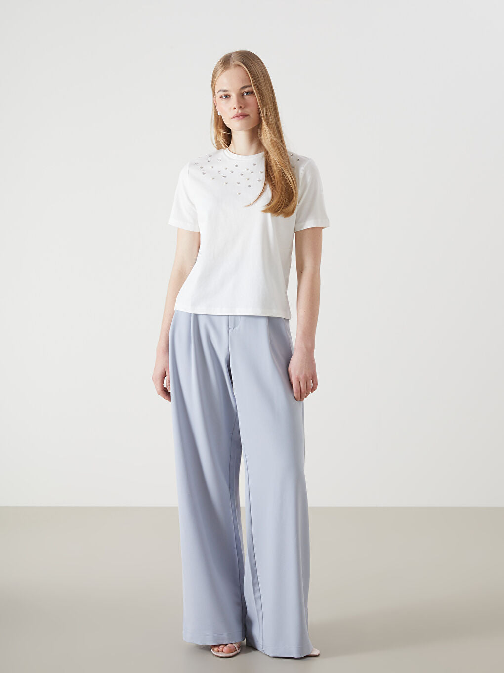 The crew neck stone printed short sleeve t-shirt offers all day comfort with its soft jersey fabric. The stone and pearl prints on it add a stylish touch to the t-shirt.