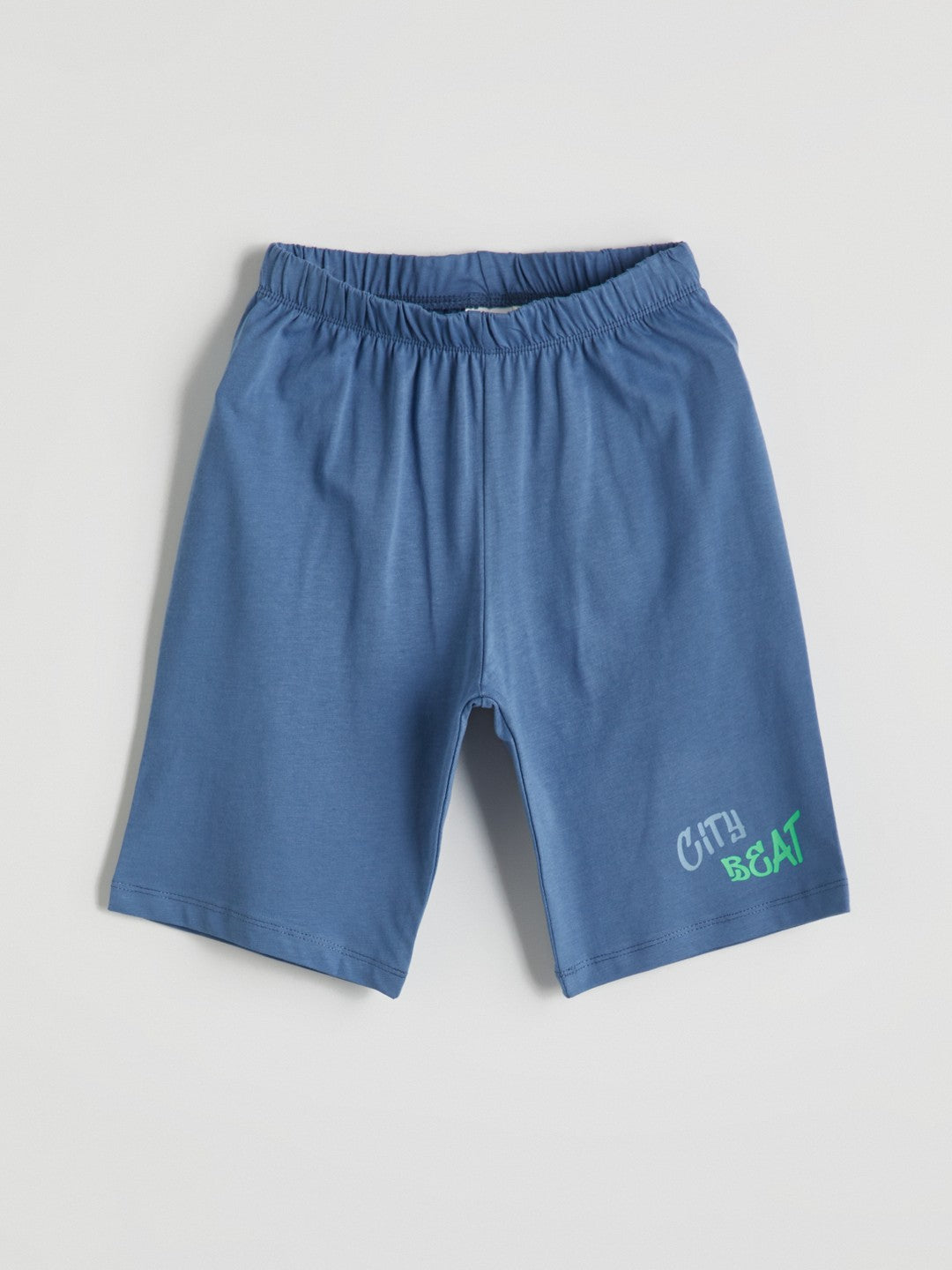 The boys shorts pajama set is designed with a printed 100% cotton combed fabric. The comfortable fabric provides a cool and comfortable sleep in the summer months and offers freedom of movement with its shorts design.