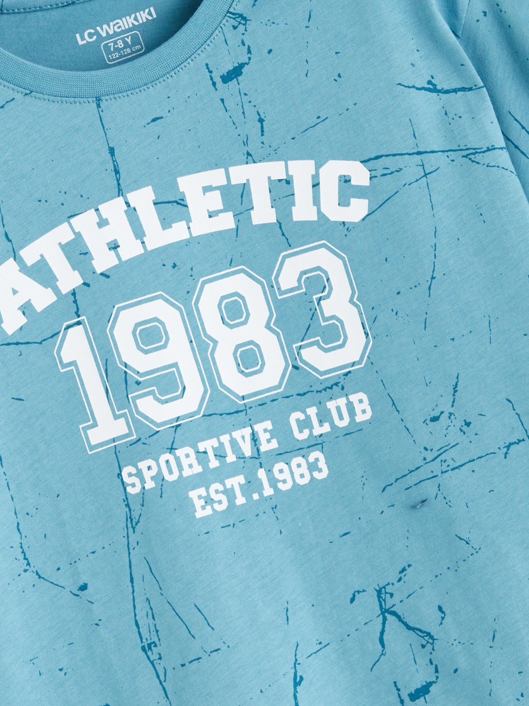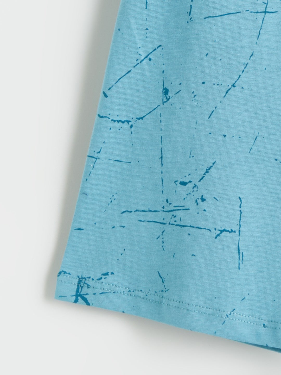 The set consists of a comfortable short-sleeved pajama top and standard-fit pajama shorts with a printed design.