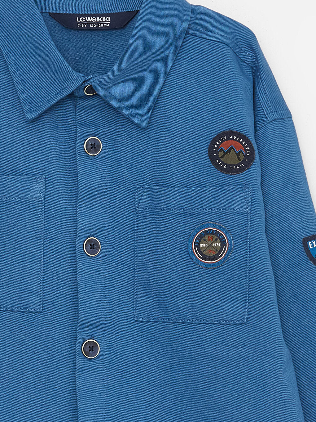Made from durable gabardine fabric, the boy's shirt combines elegance and comfort. While it offers a useful look with its design with double chest pockets on the front, it also offers your children a stylish look with its applique embroidery details.