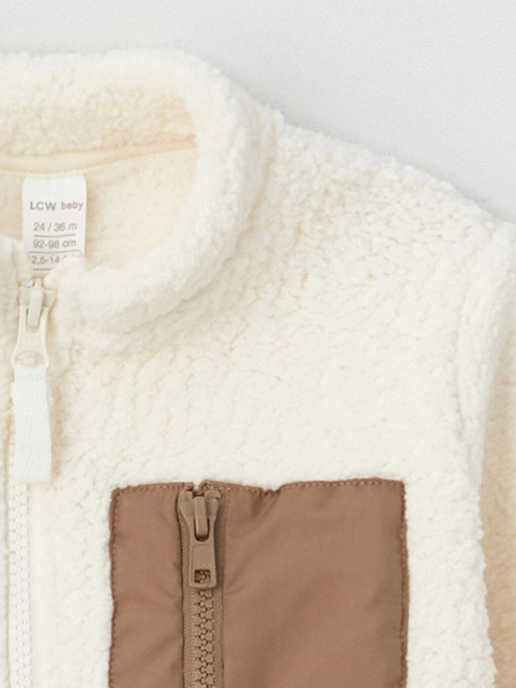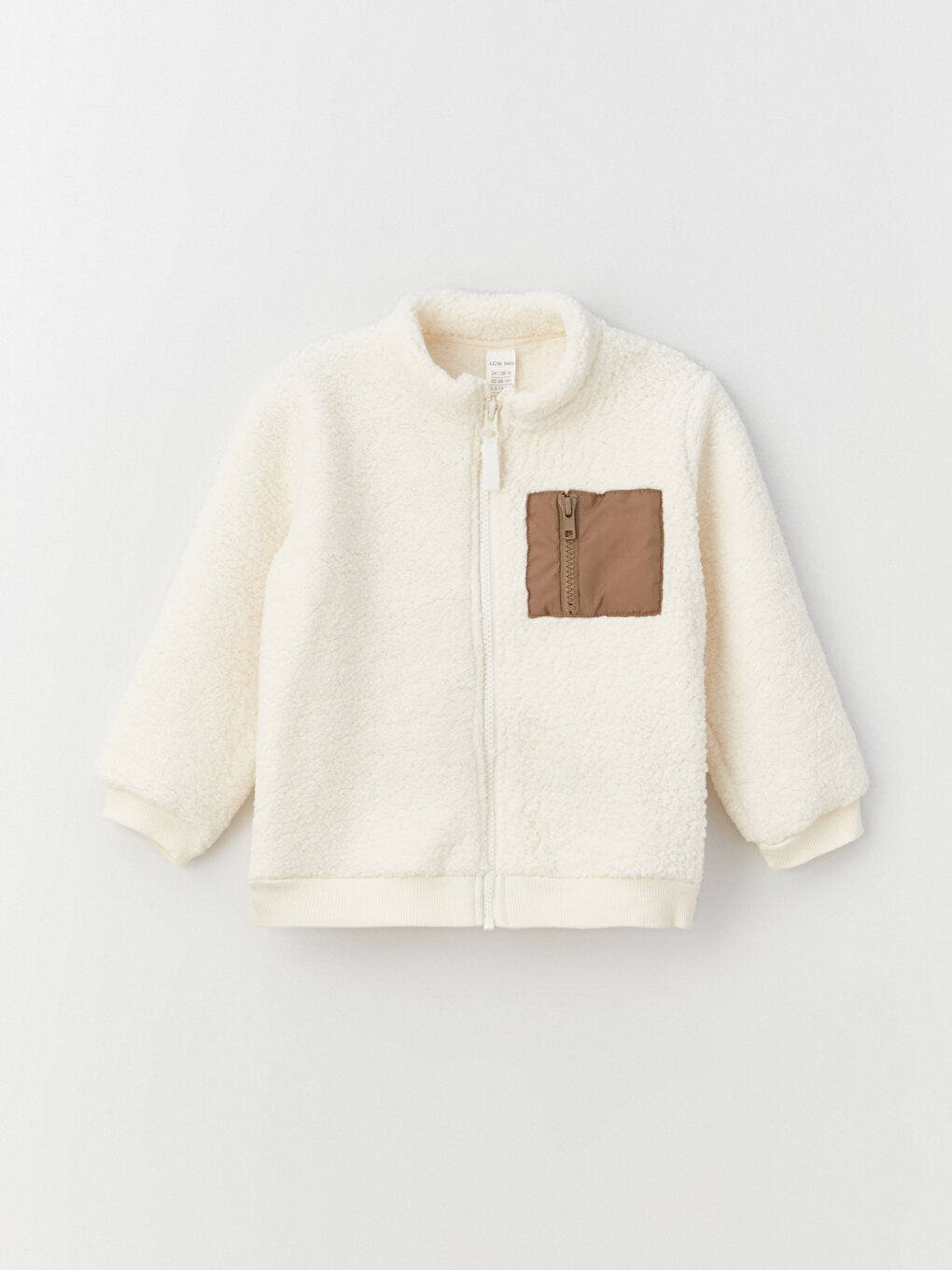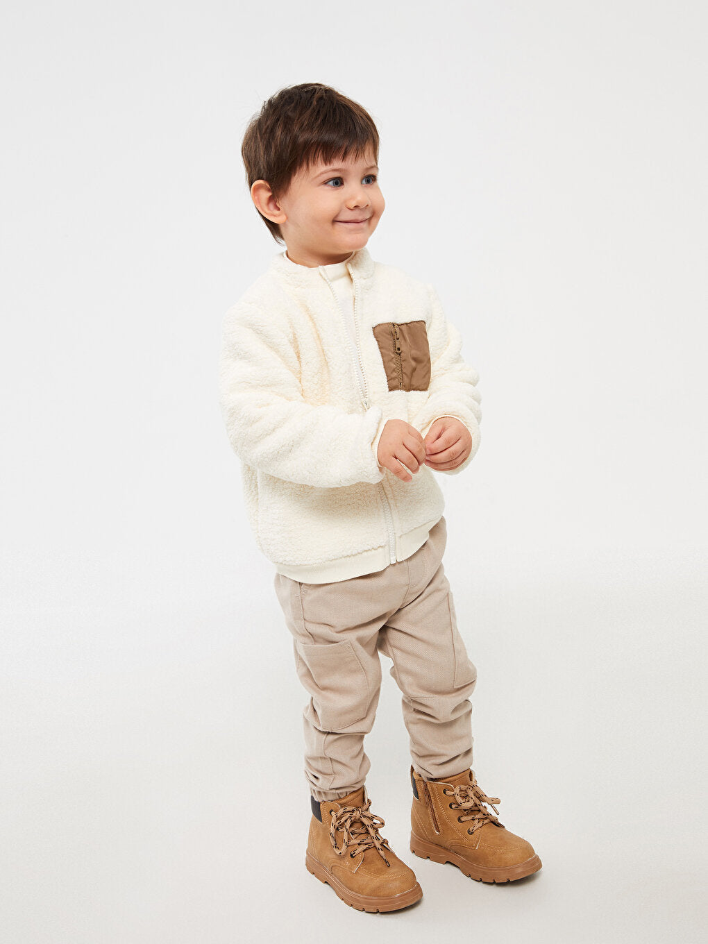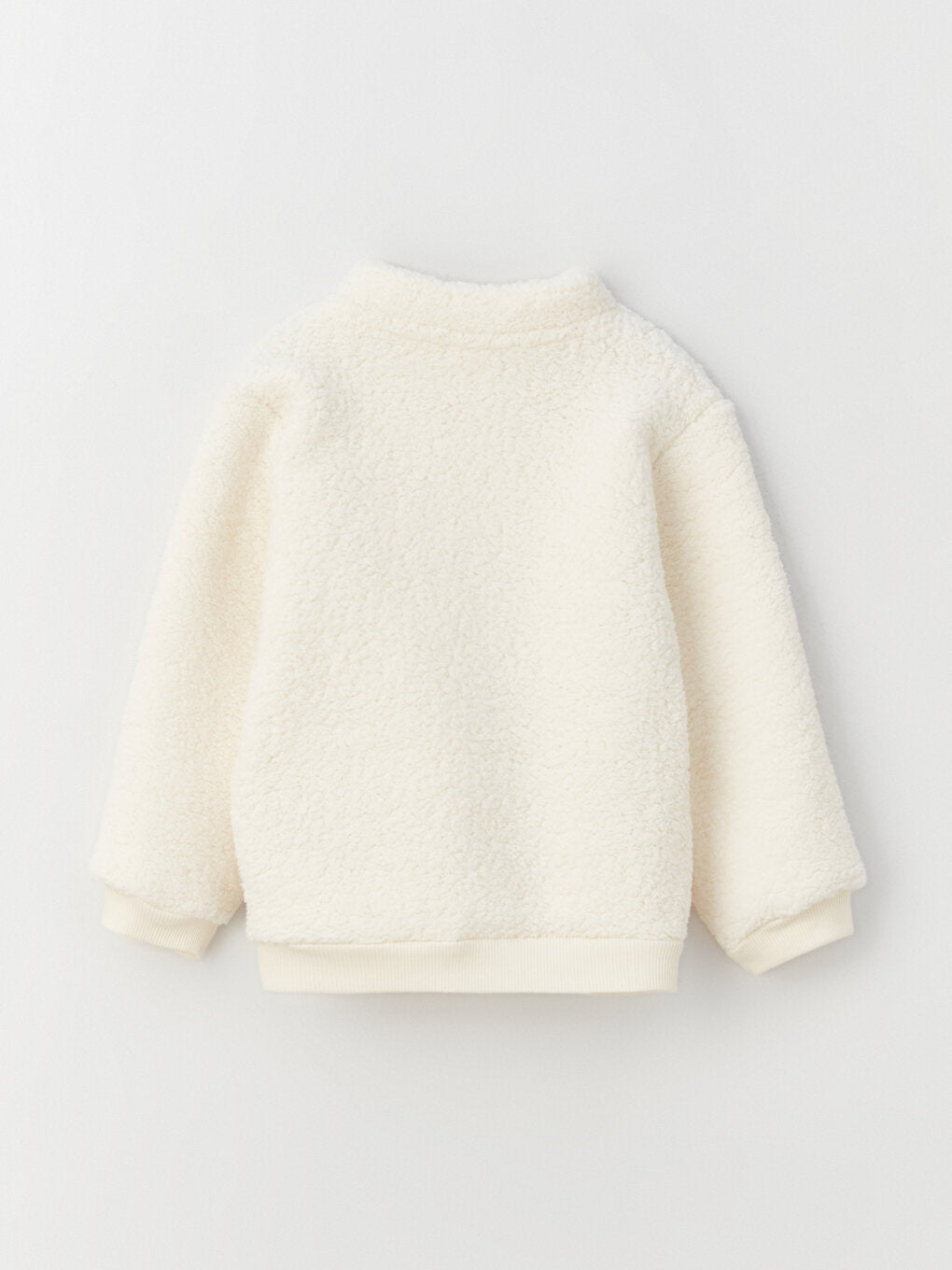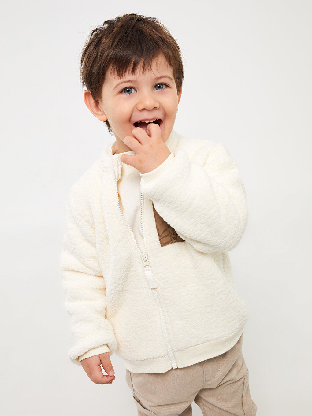 Stand-up collar plush baby boy zippered sweatshirt is an option that offers warmth and comfort. It is easy to wear with its zippered design. It highlights your baby's comfort and elegance.