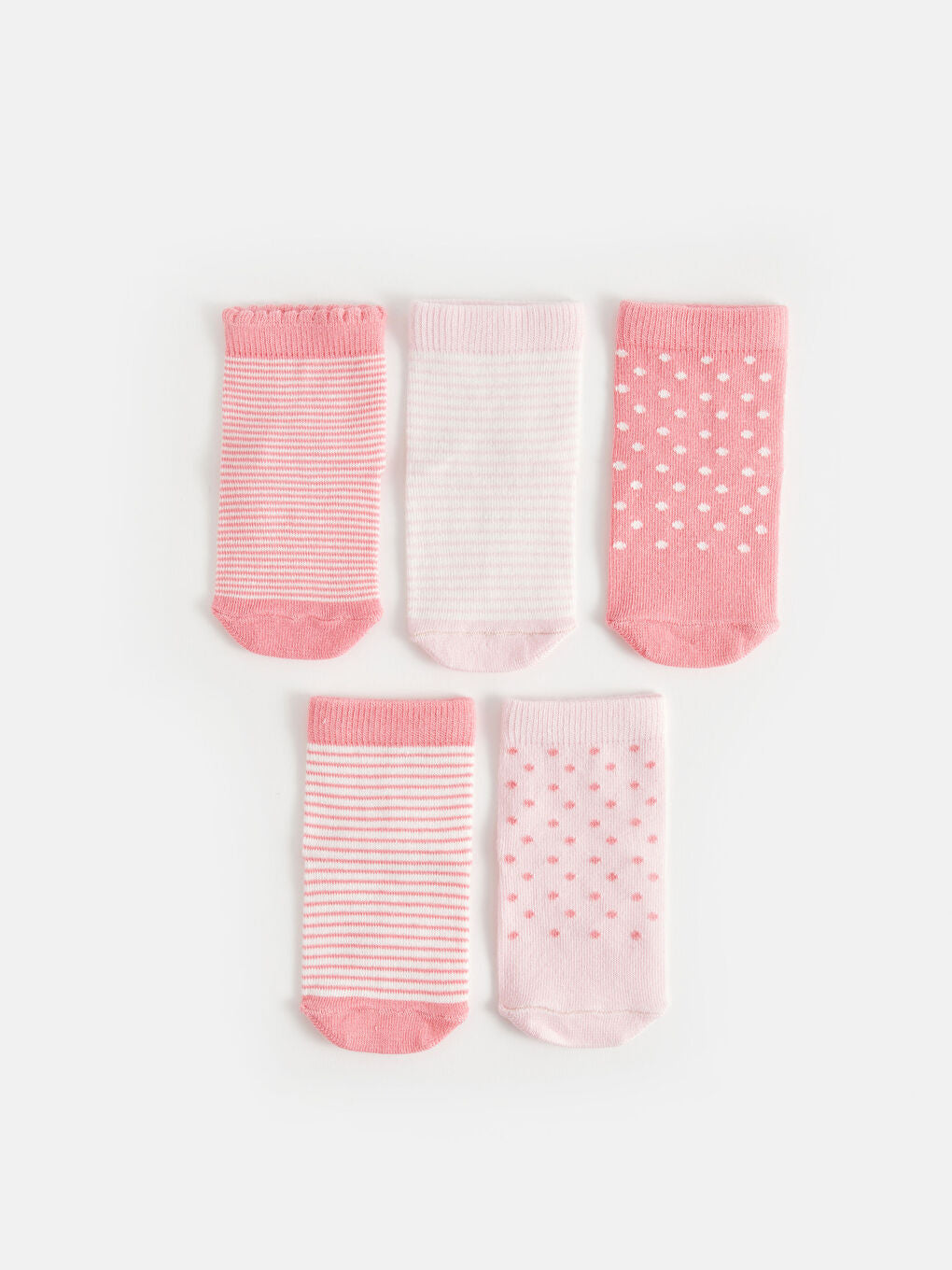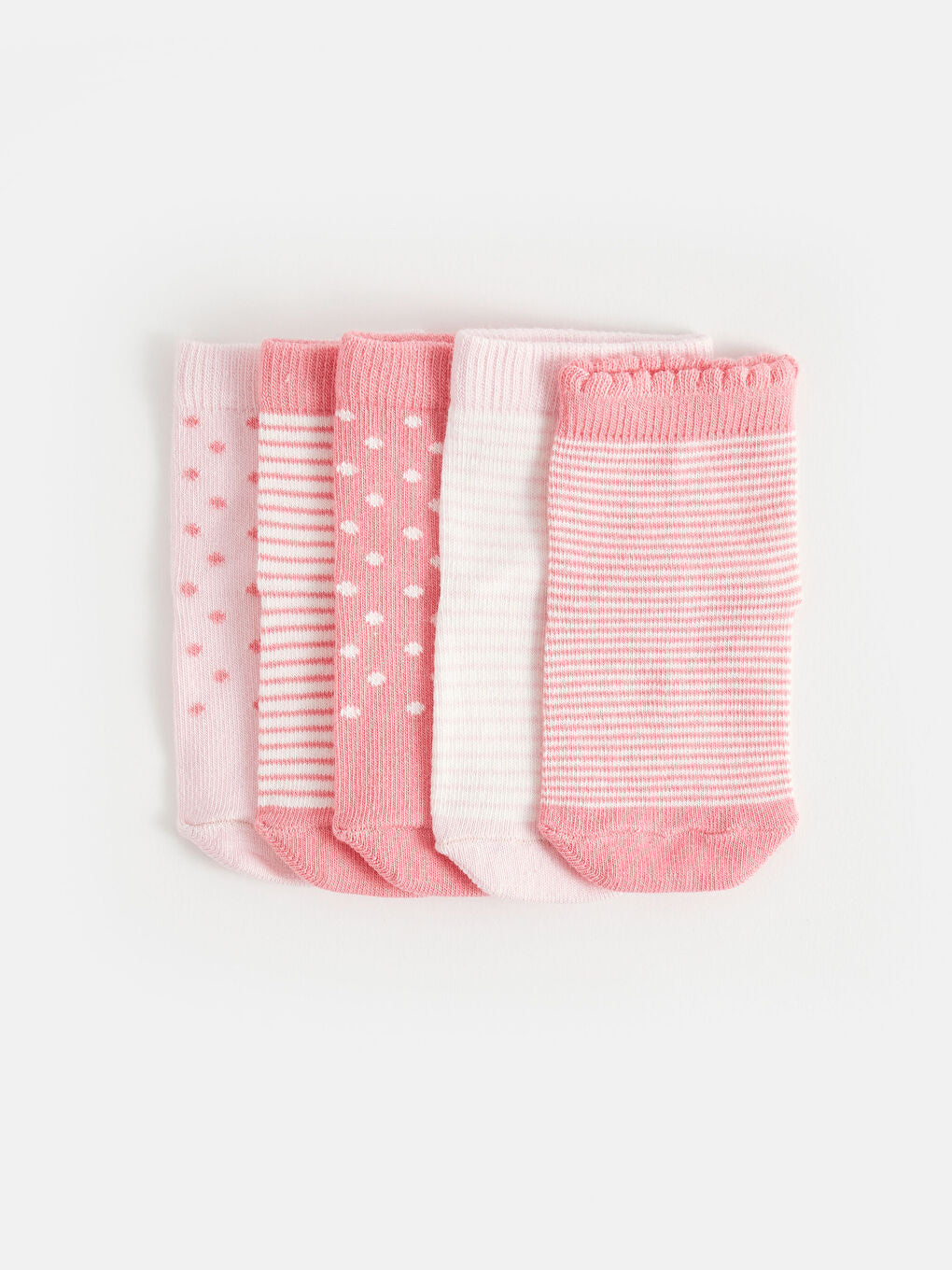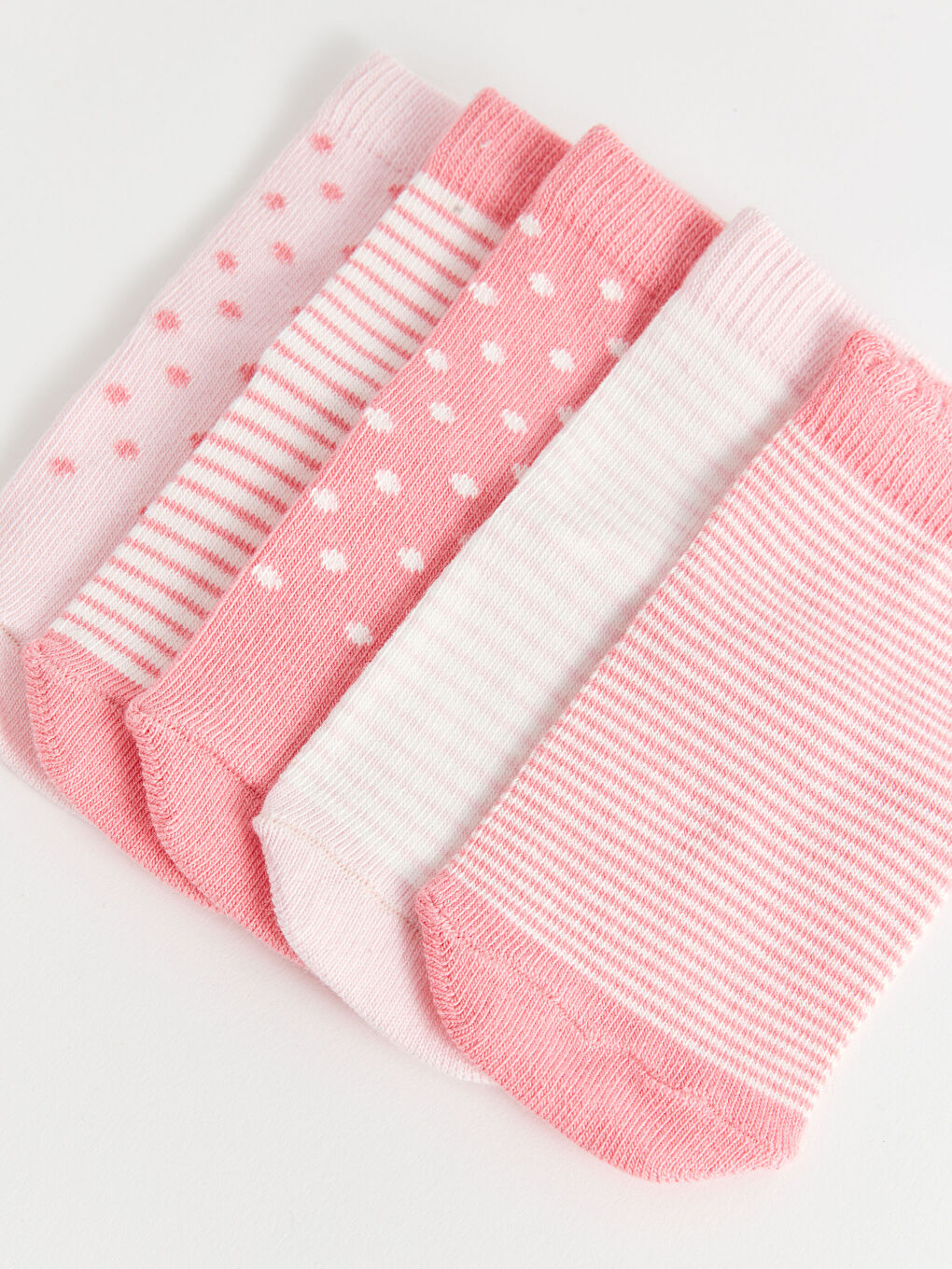 Patterned Baby Girl Sock Socks consist of a set of 5 and are made of cotton blended flexible fabric.