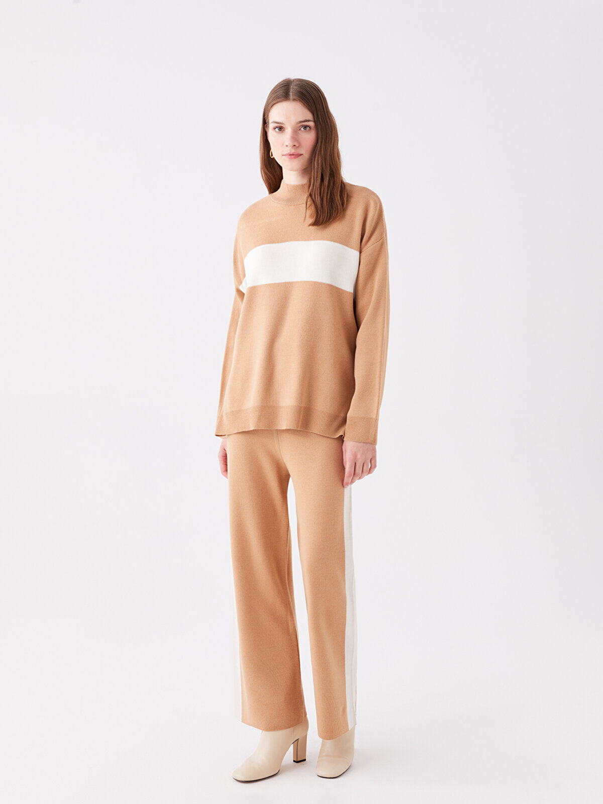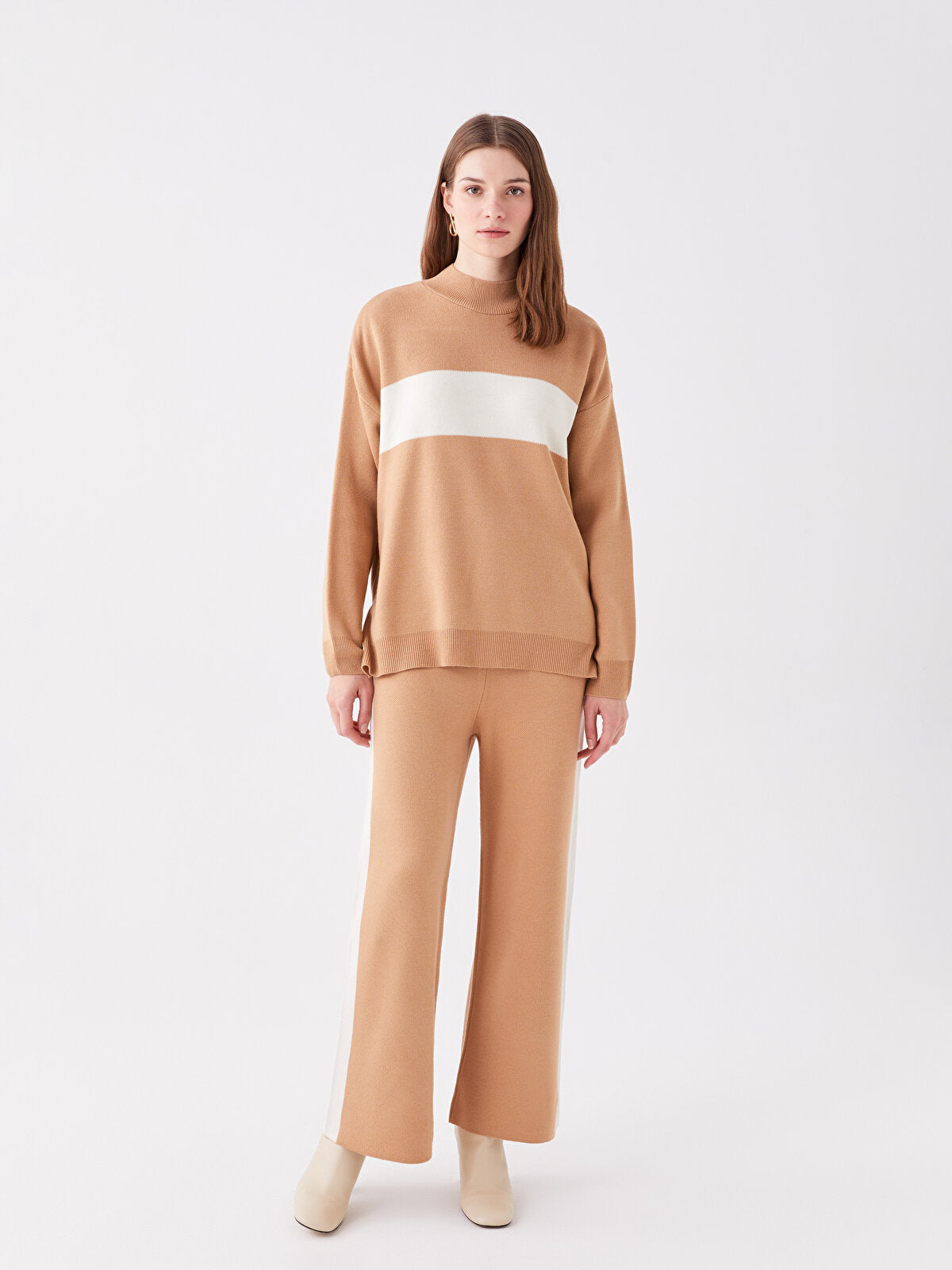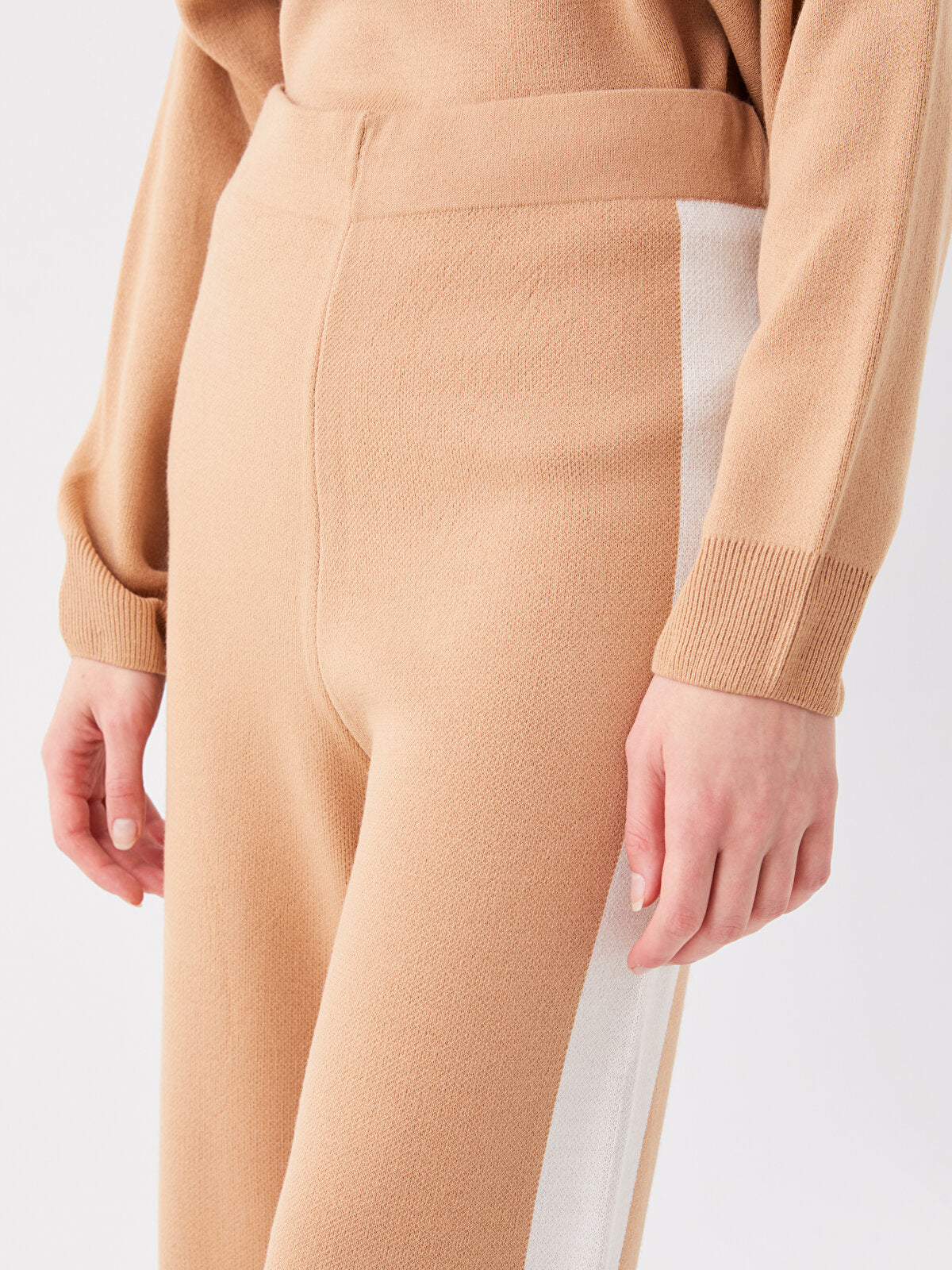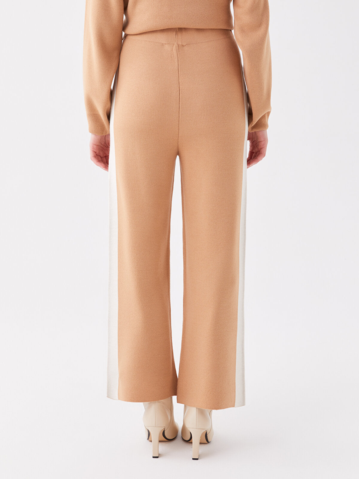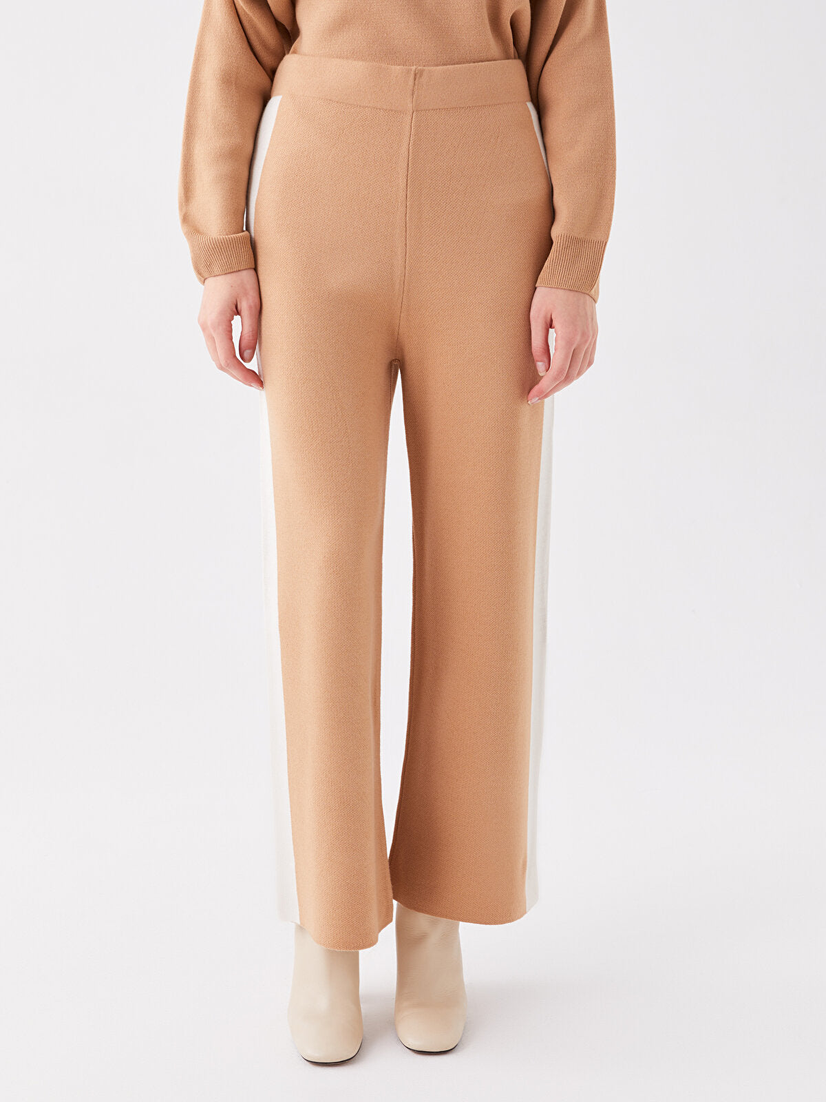 بنطالون كلاسيكي نسائي مصنوع من الجيرسيه بخصر مطاطي وتفاصيل متباينة