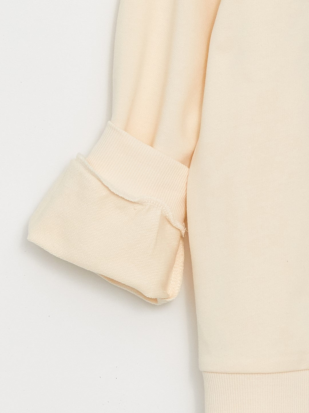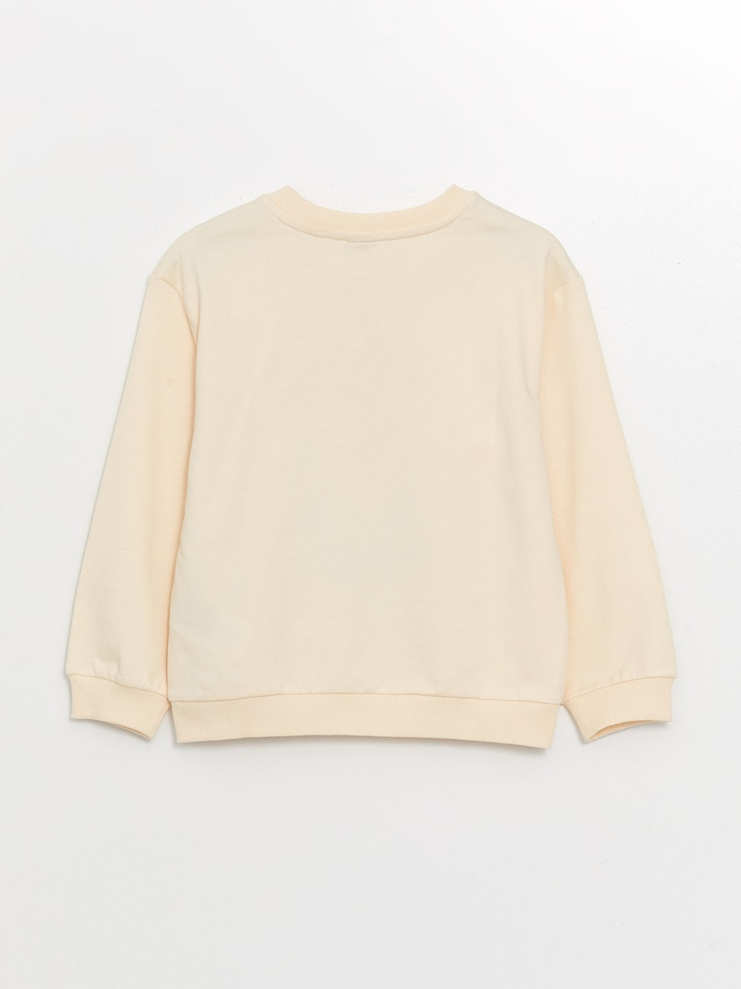 LCW Kids Pale Beige Crew Neck Printed Long Sleeve Girl's Sweatshirt
