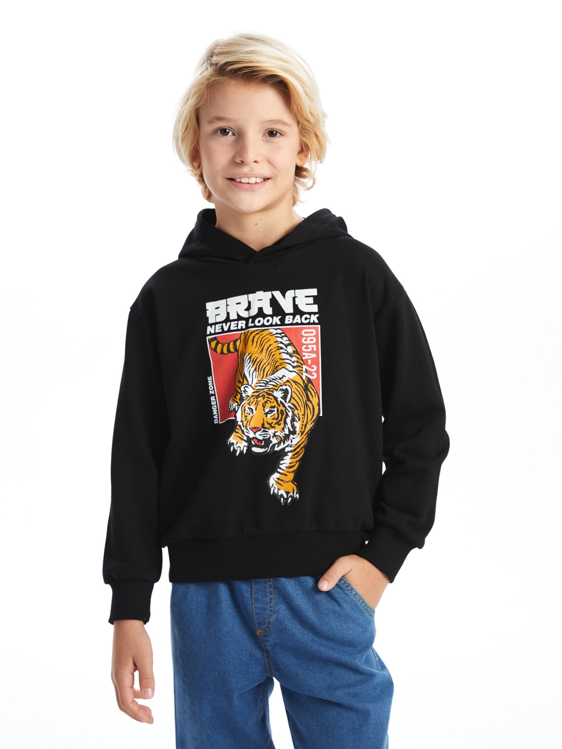 Lcw Kids Black Hooded Boy Sweatshirt