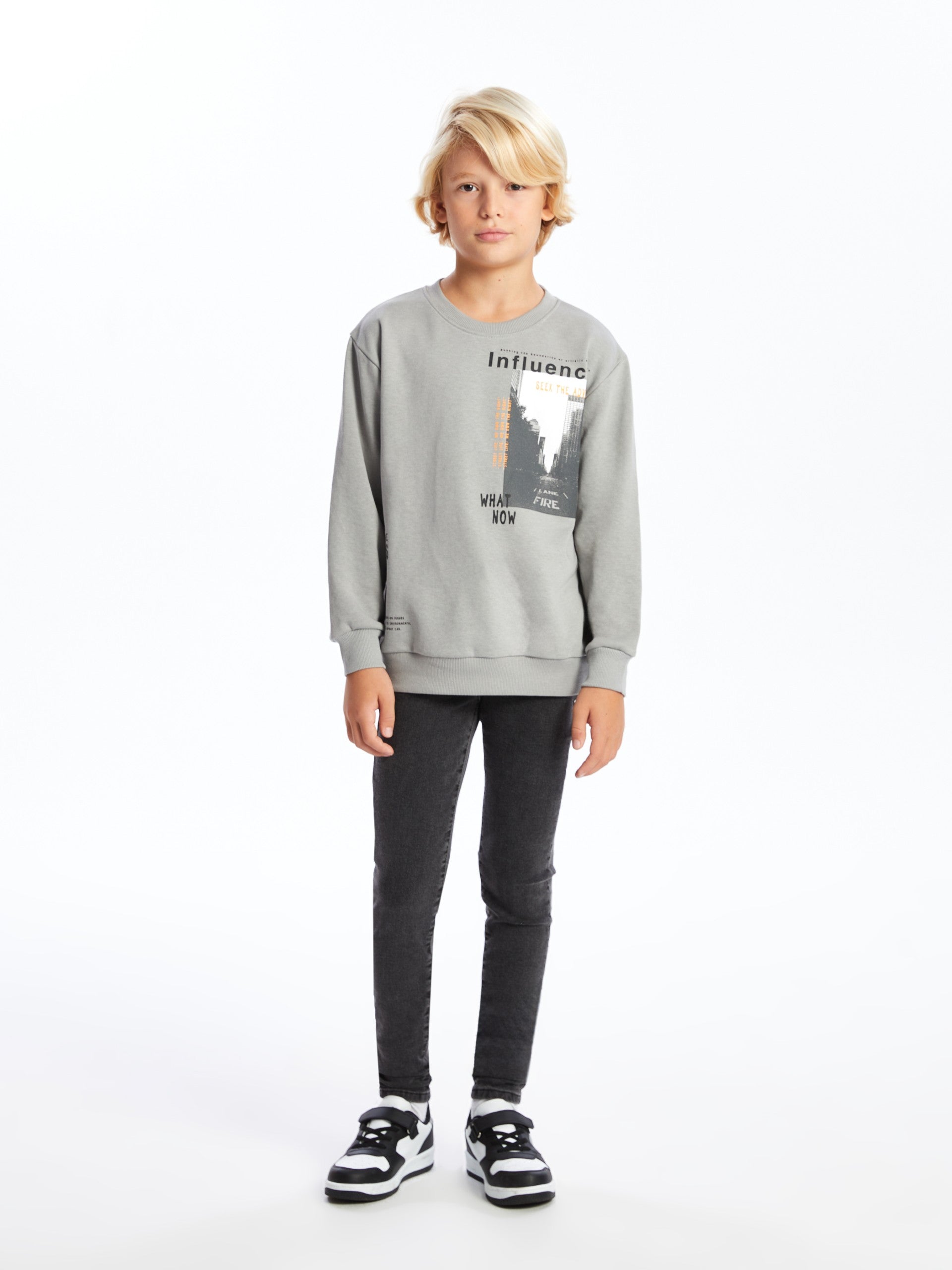 Lcw Kids Gray Crew Neck Boy Sweatshirt