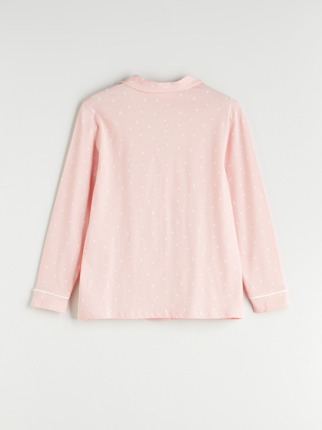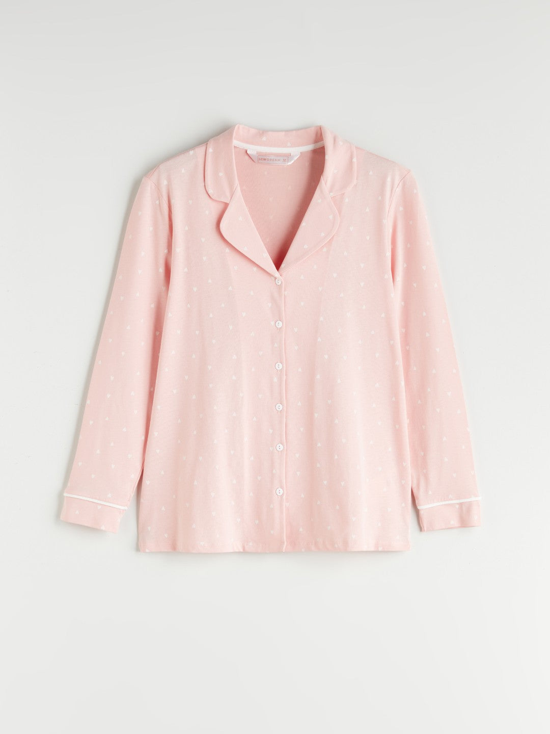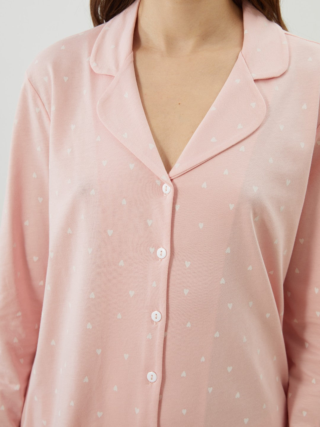 LCW Dream Pink Plus Size Shirt Collar Heart Printed Women Pajama Set