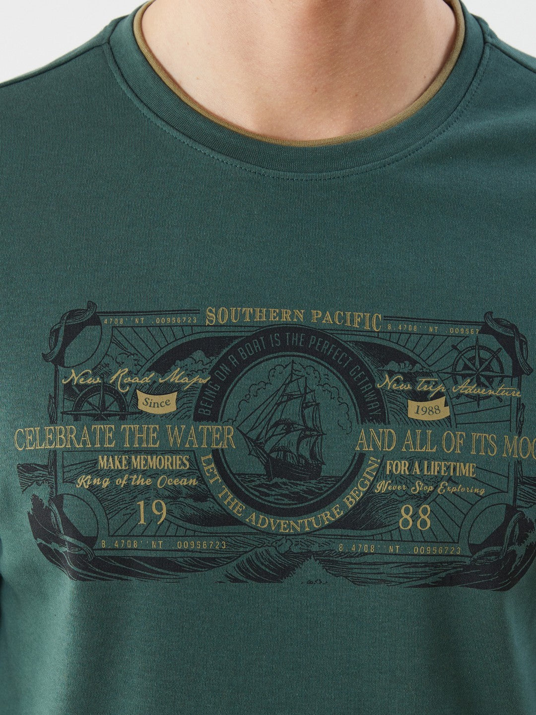 LCW Classic Navy Blue Crew Neck Long Sleeve Printed Men Sweatshirt