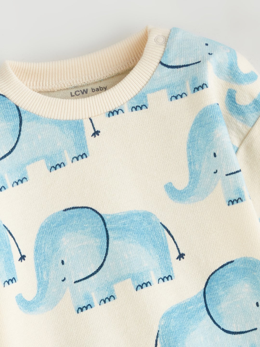 LCW Baby Ecru Printed Baby Boy Sweatshirt And Tracksuit Bottom 2-Pack