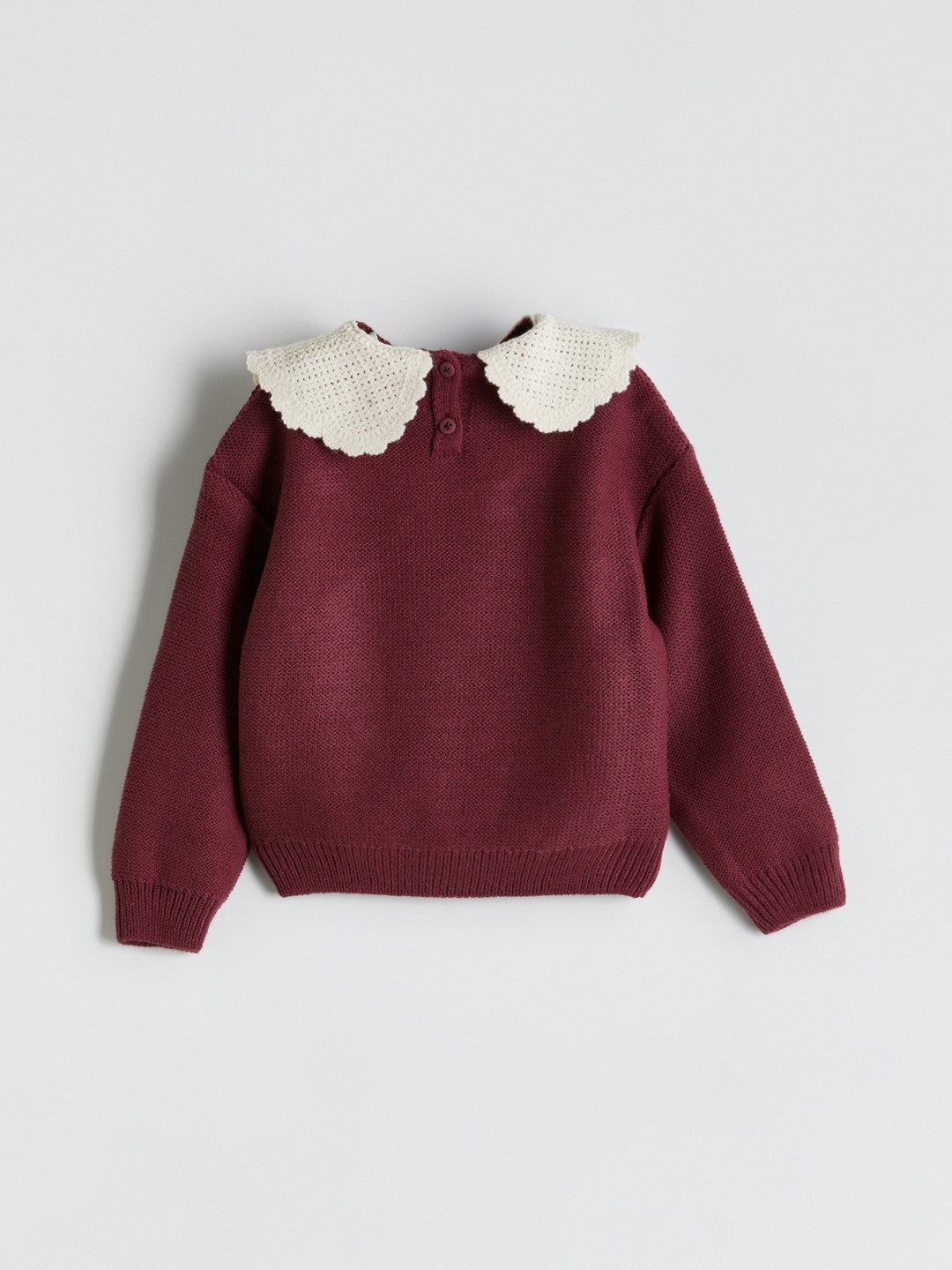 LCW Kids Burgundy Baby Collar Floral GirlS Knitwear Sweater