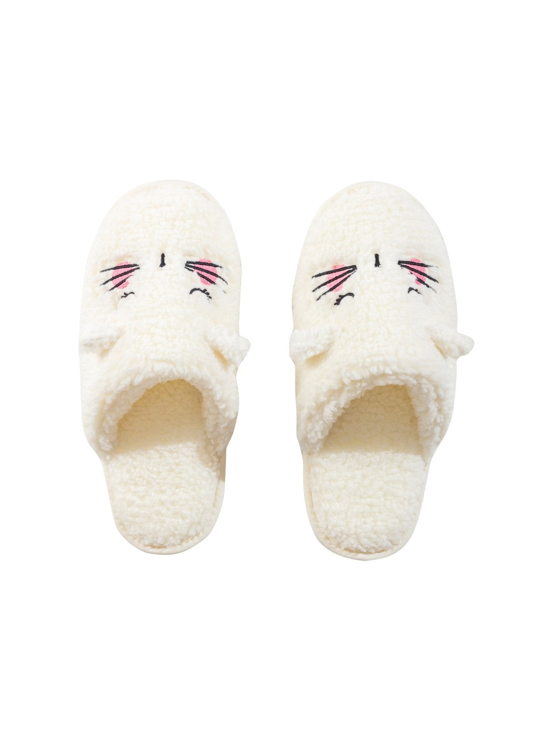 LCW Steps White Animal Embroidered Plush Women Home Slippers