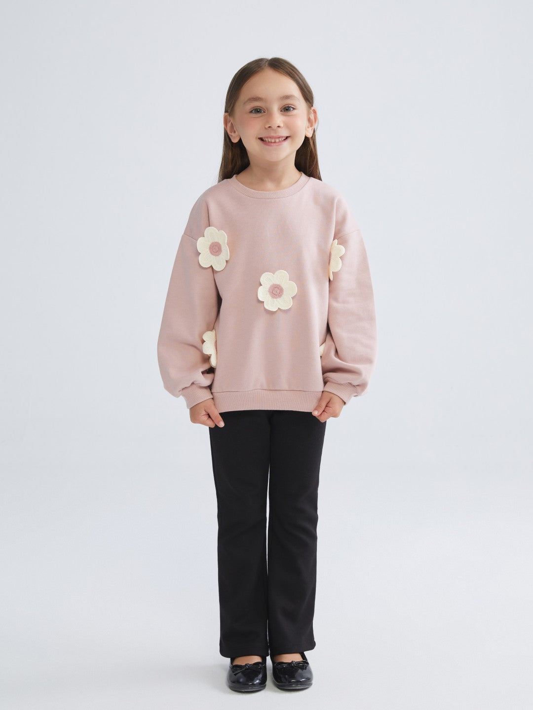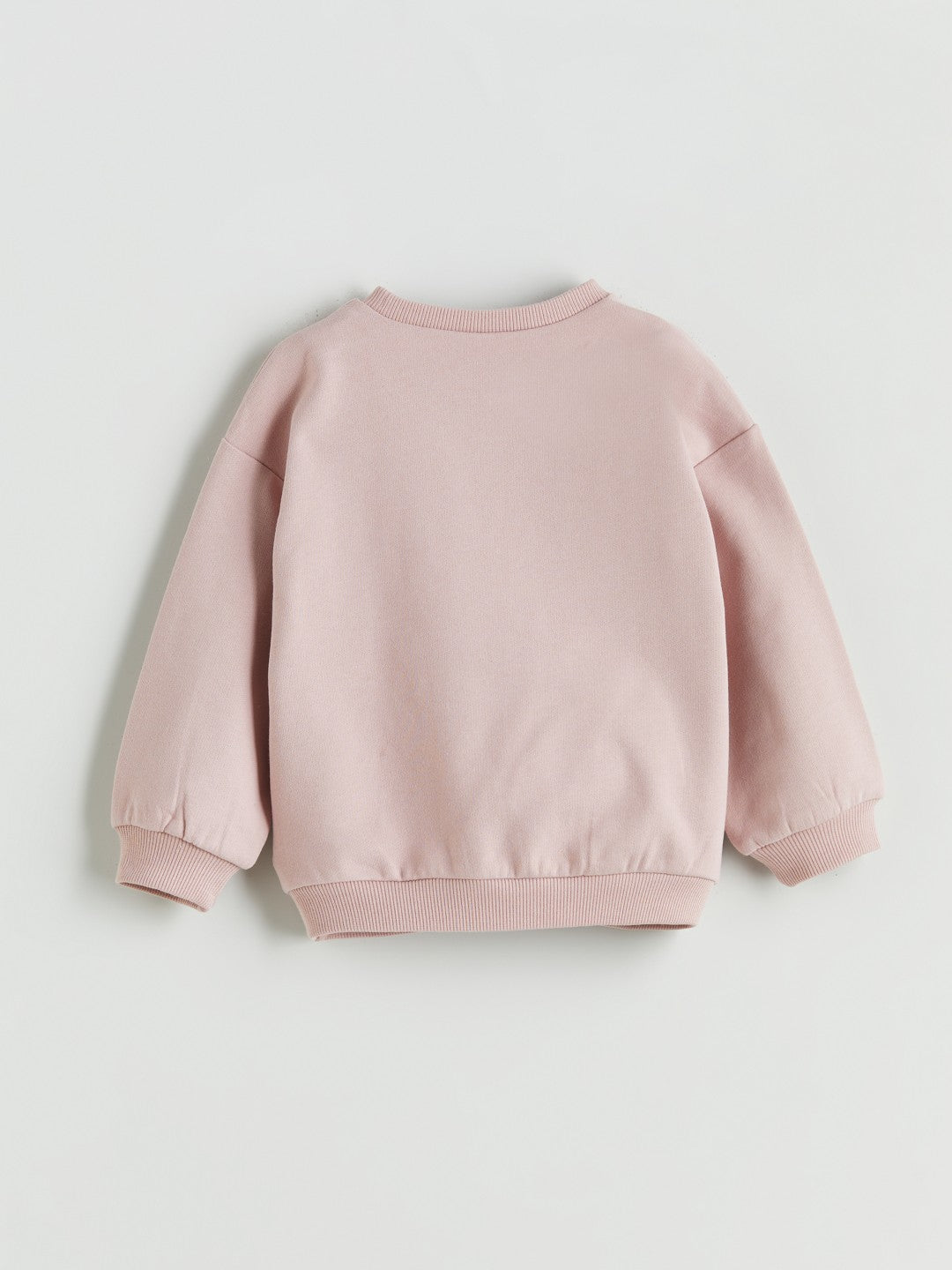 Crew neck, long sleeve girls sweatshirt made of 3-thread cotton fabric. Sleeve ends and hem are ribbed.
