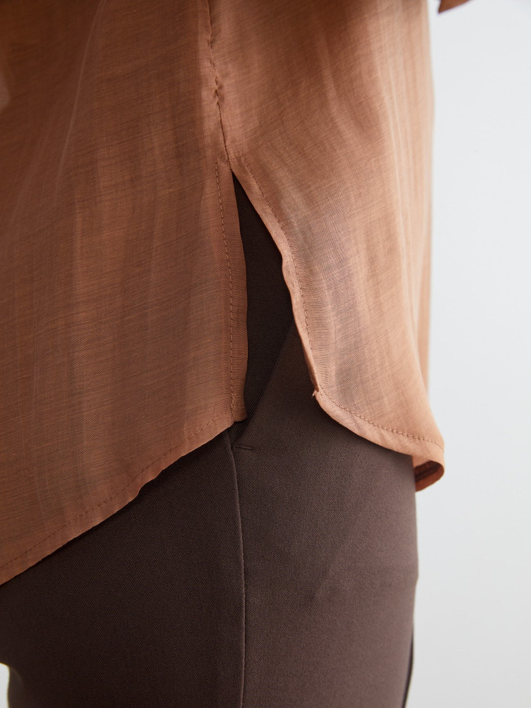 LCW Classic Beige Plus Size Double Breasted Collar Women Shirt Tunic