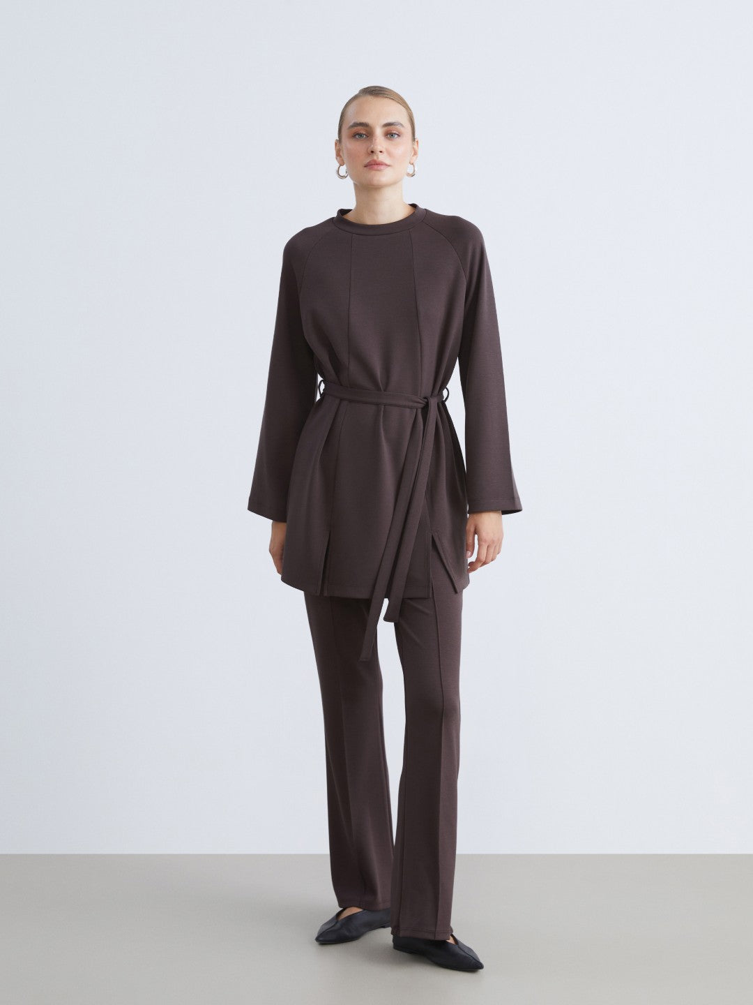 LCW Modest Brown Crew Neck Women Sweatshirt Tunic