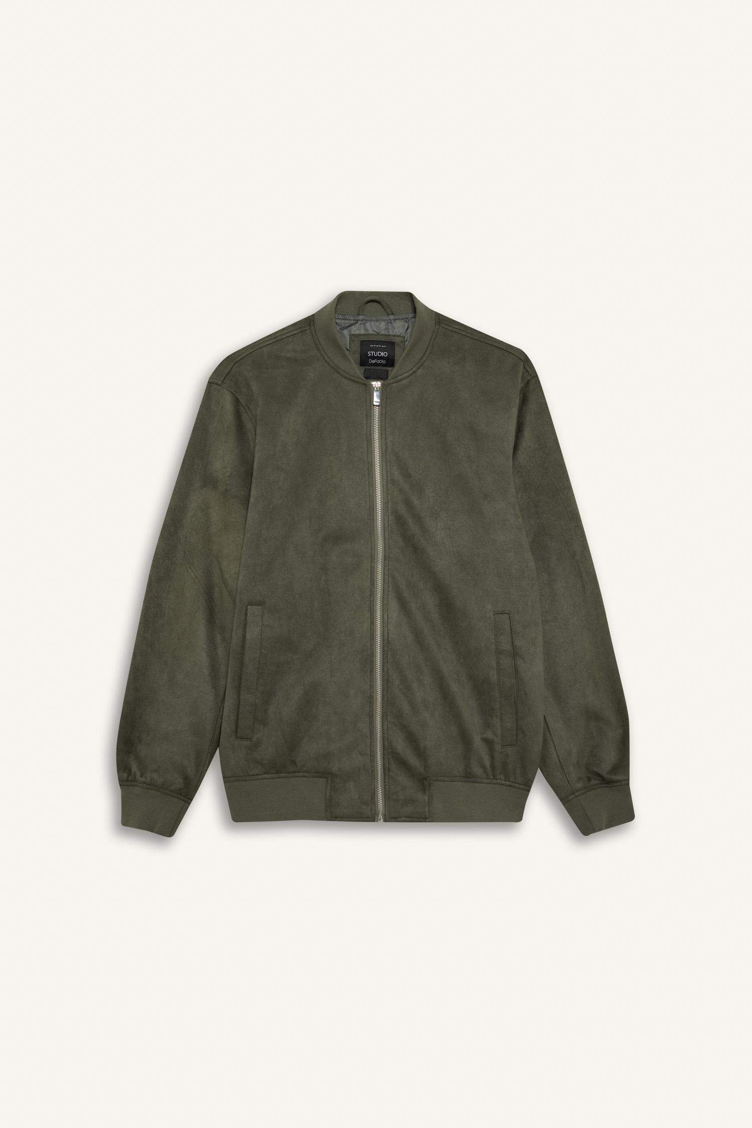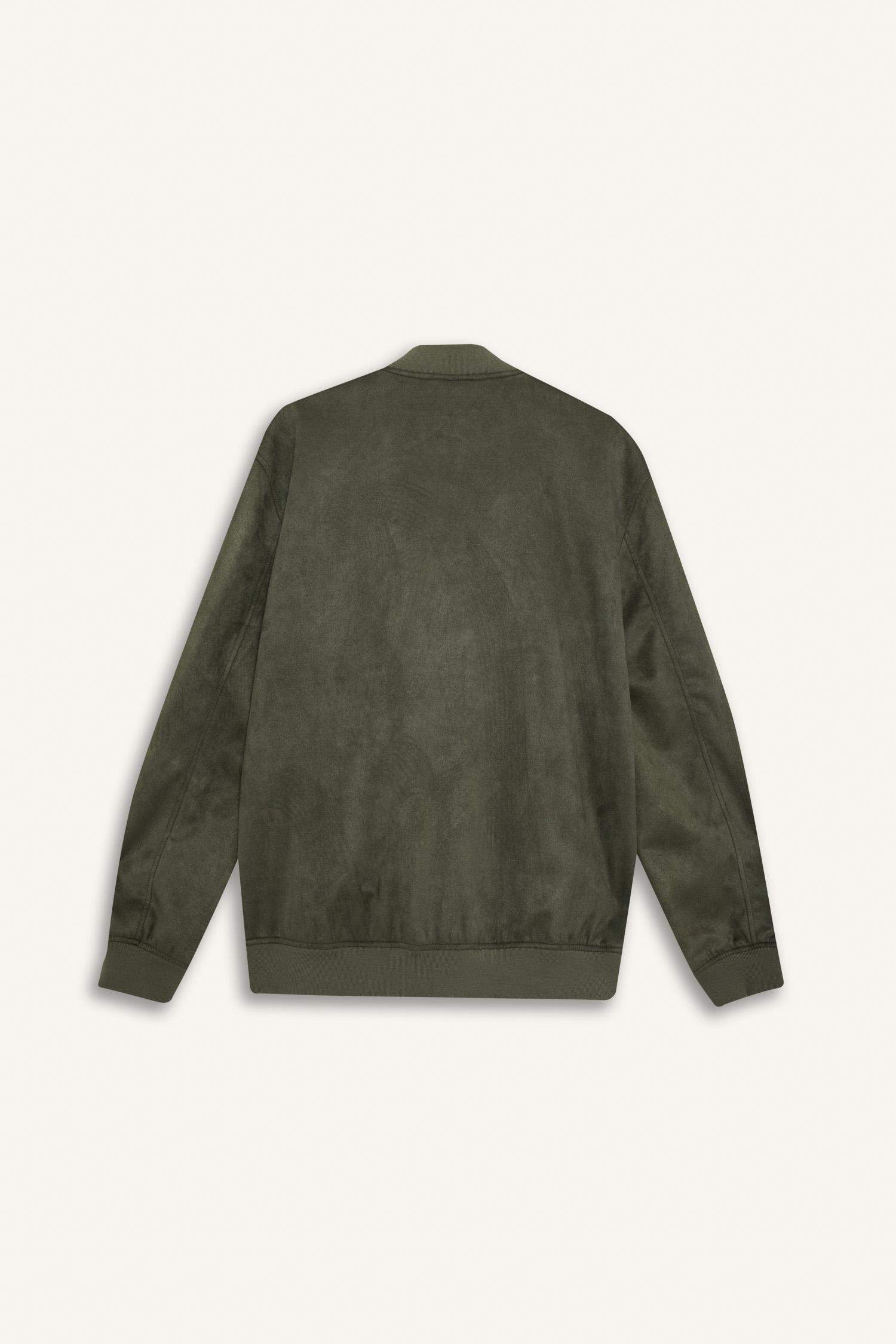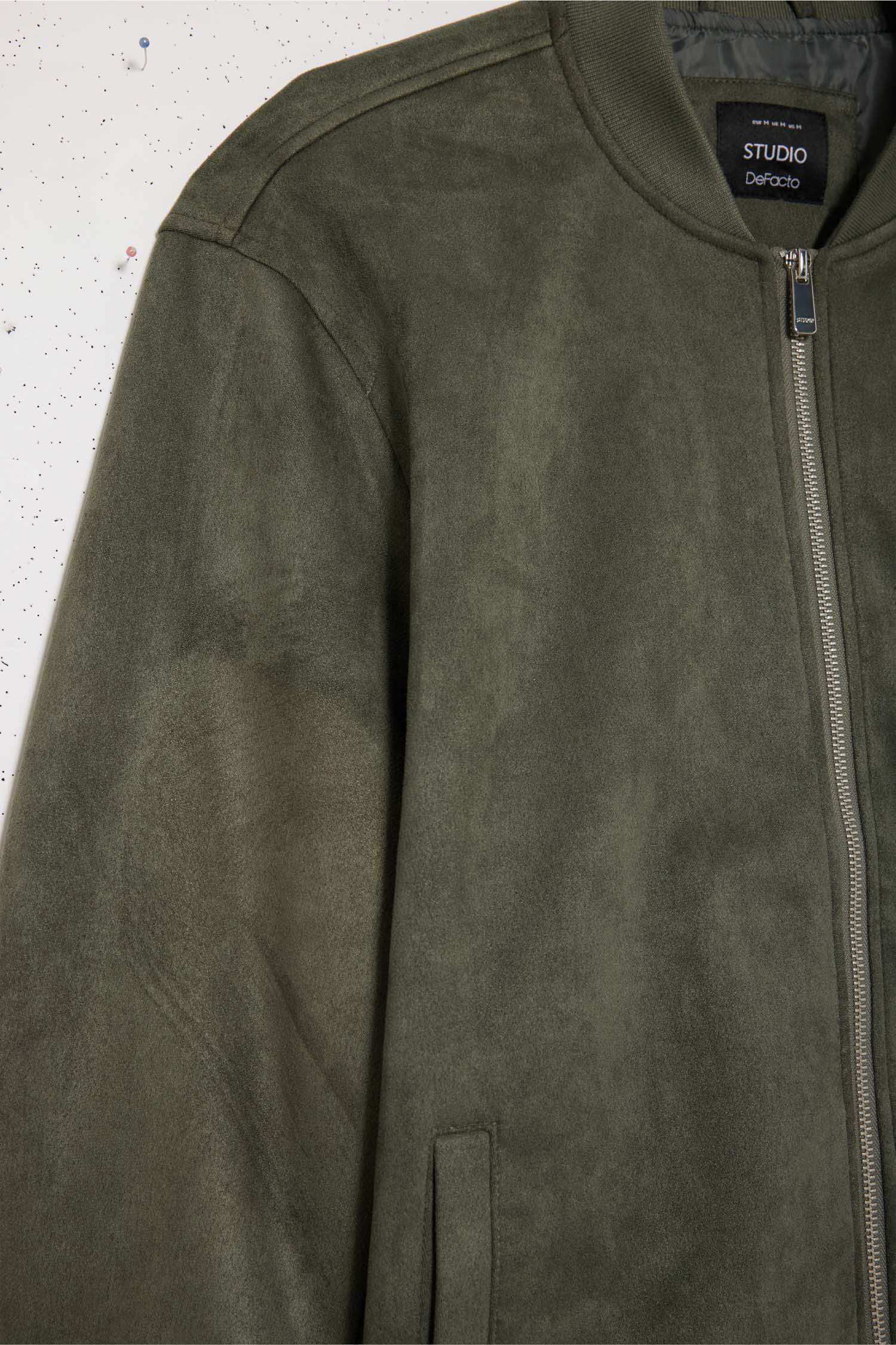 Slim Fit College Collar Zippered Suede Bomber Jacket