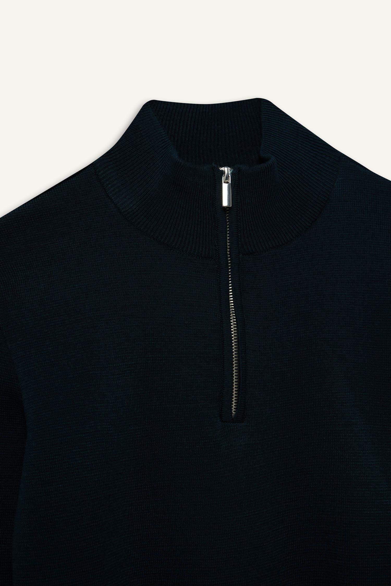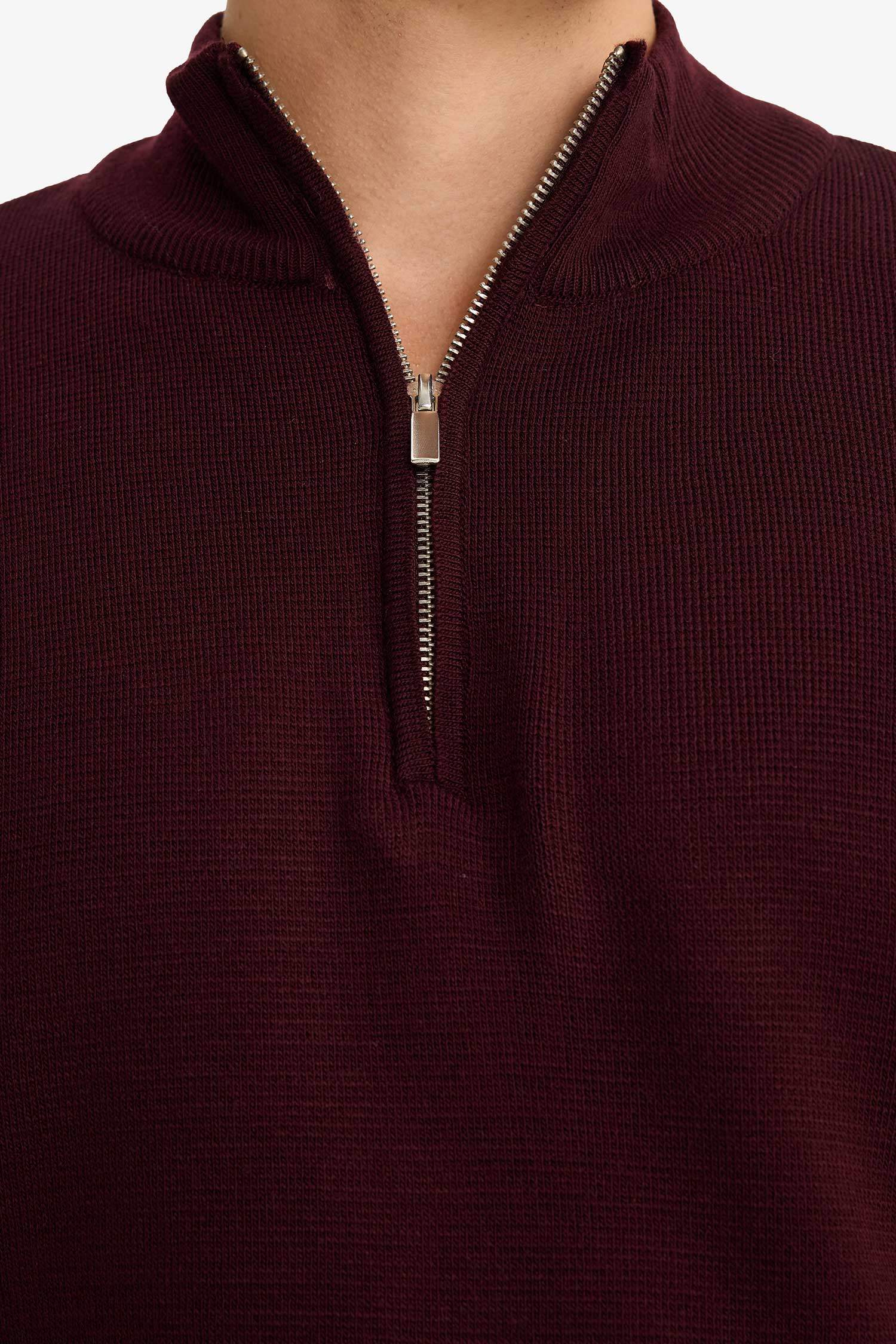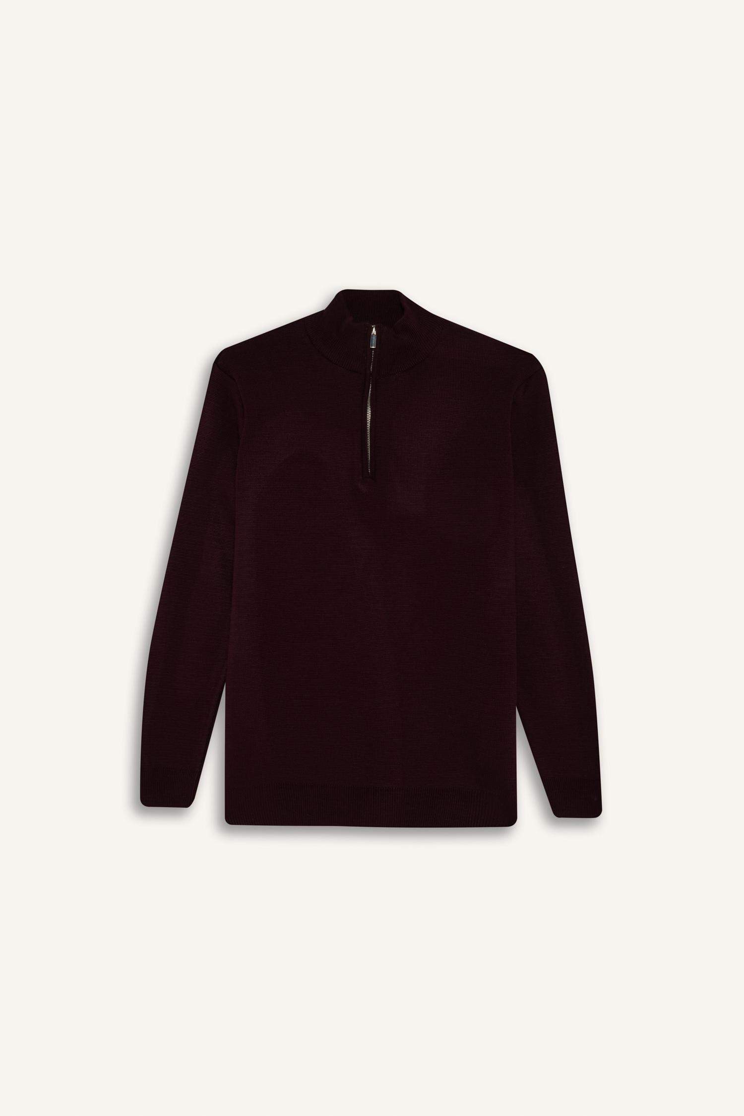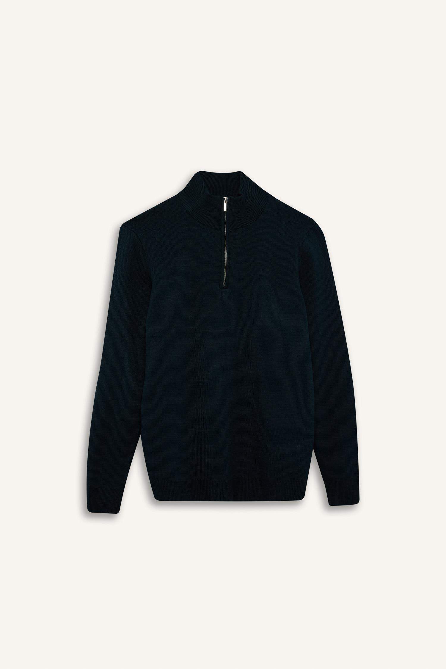 Standard Fit Regular Cut Stand Collar Half Zipper Basic Plain Knitwear Sweater