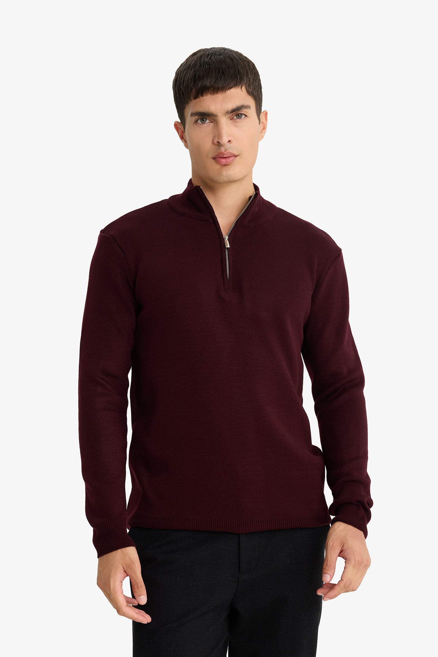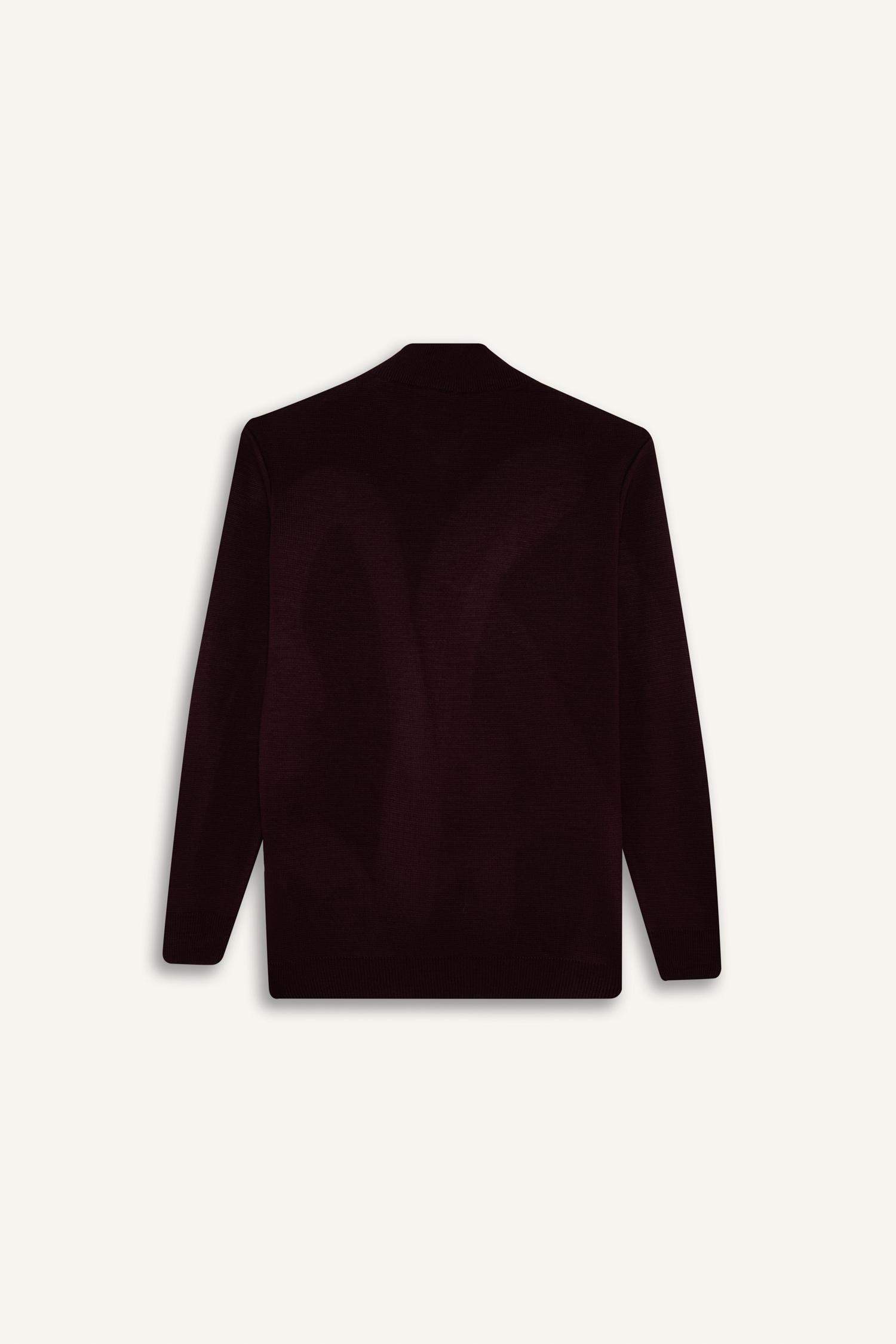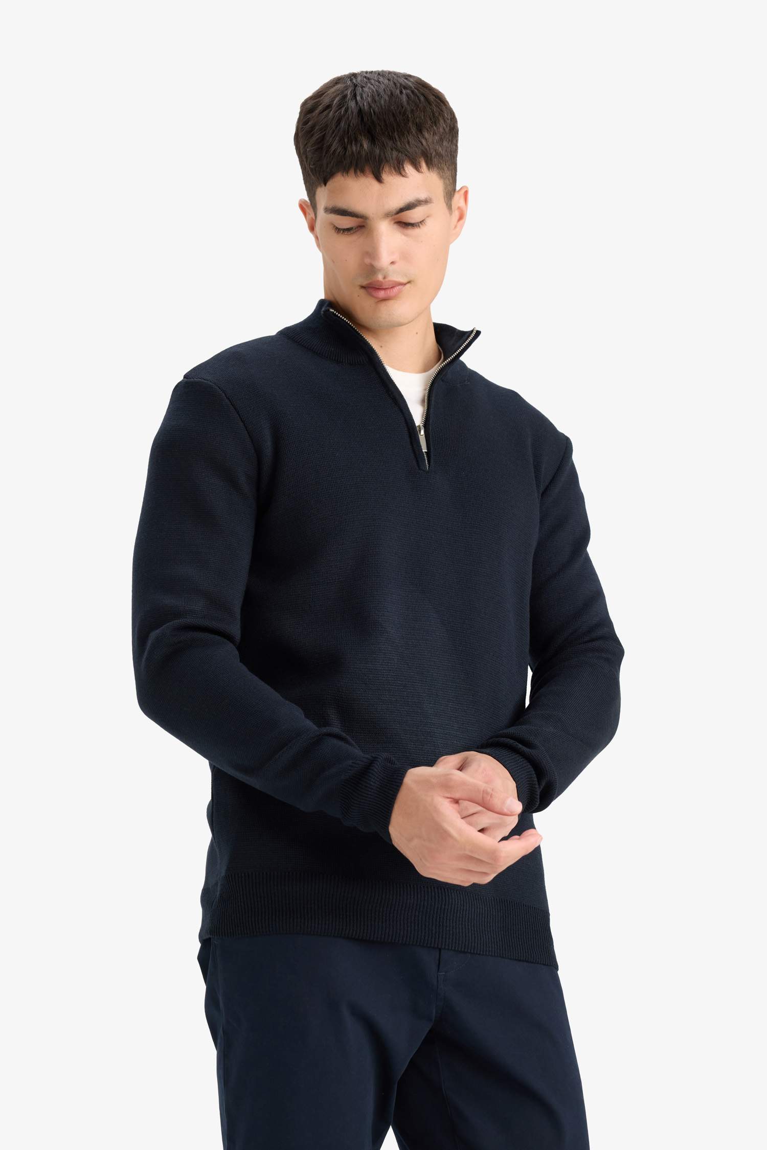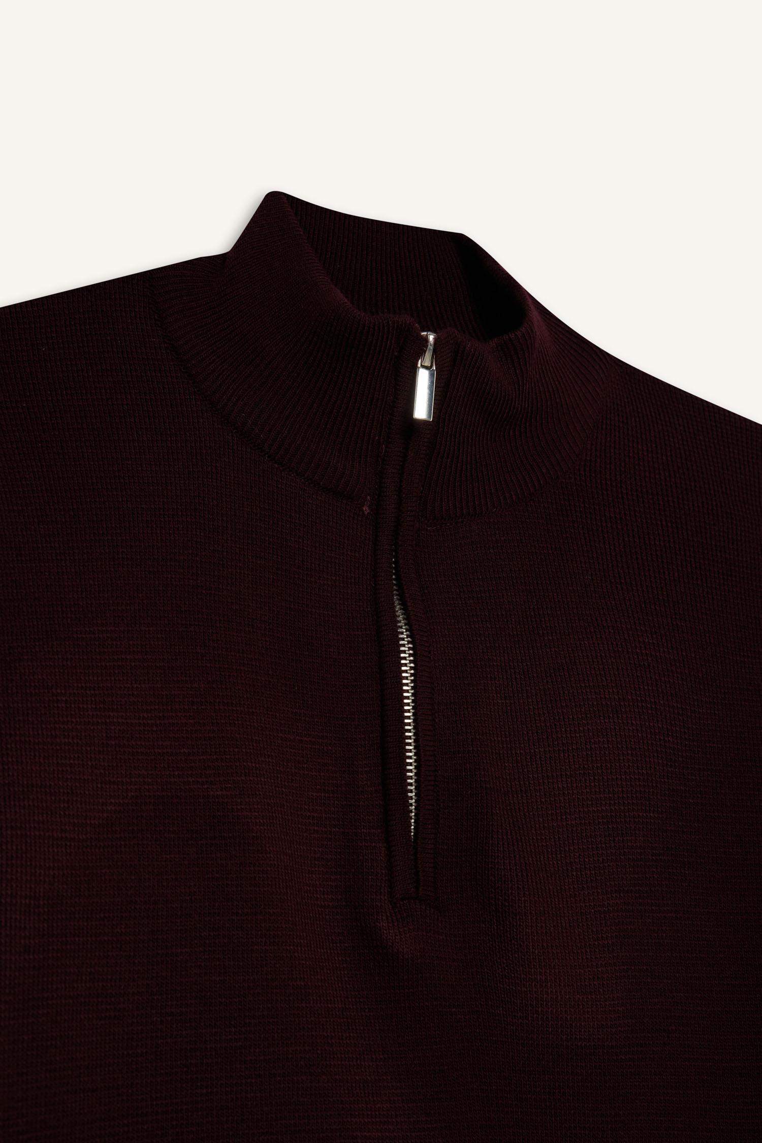 Standard Fit Regular Cut Stand Collar Half Zipper Basic Plain Knitwear Sweater