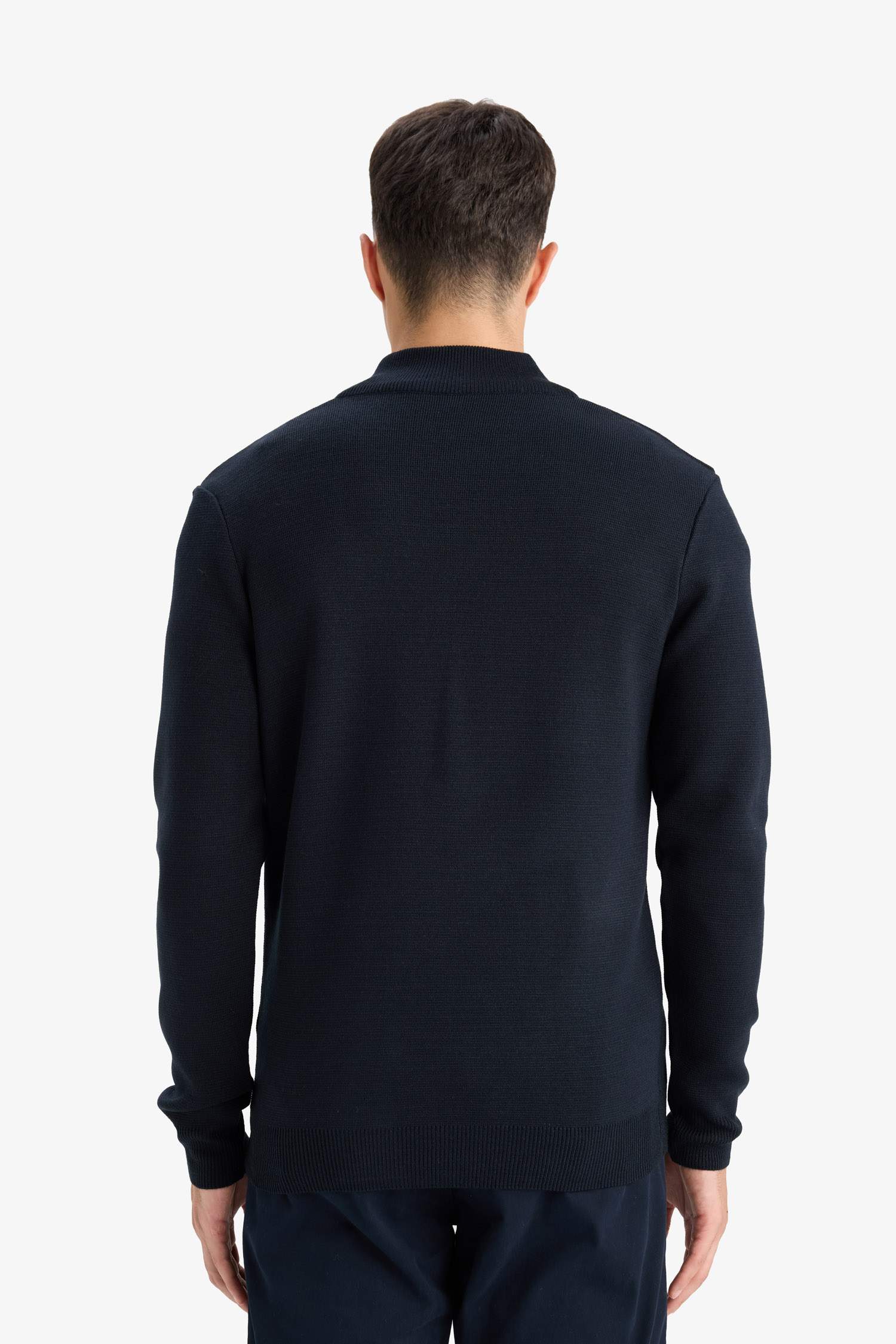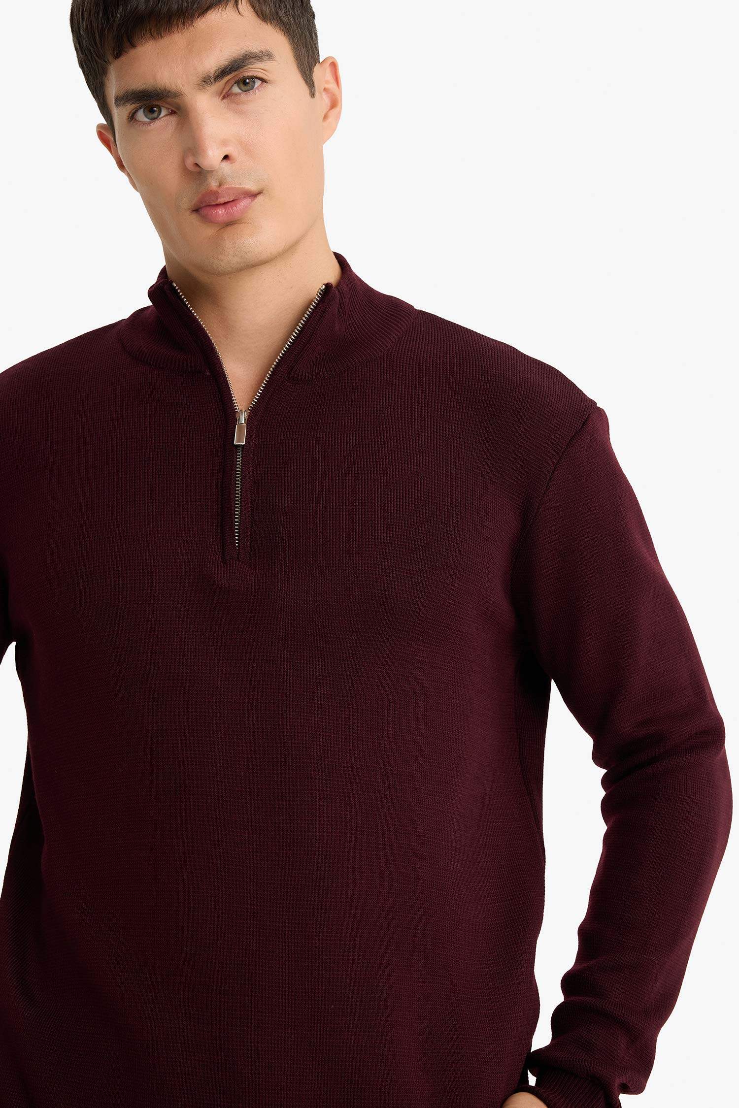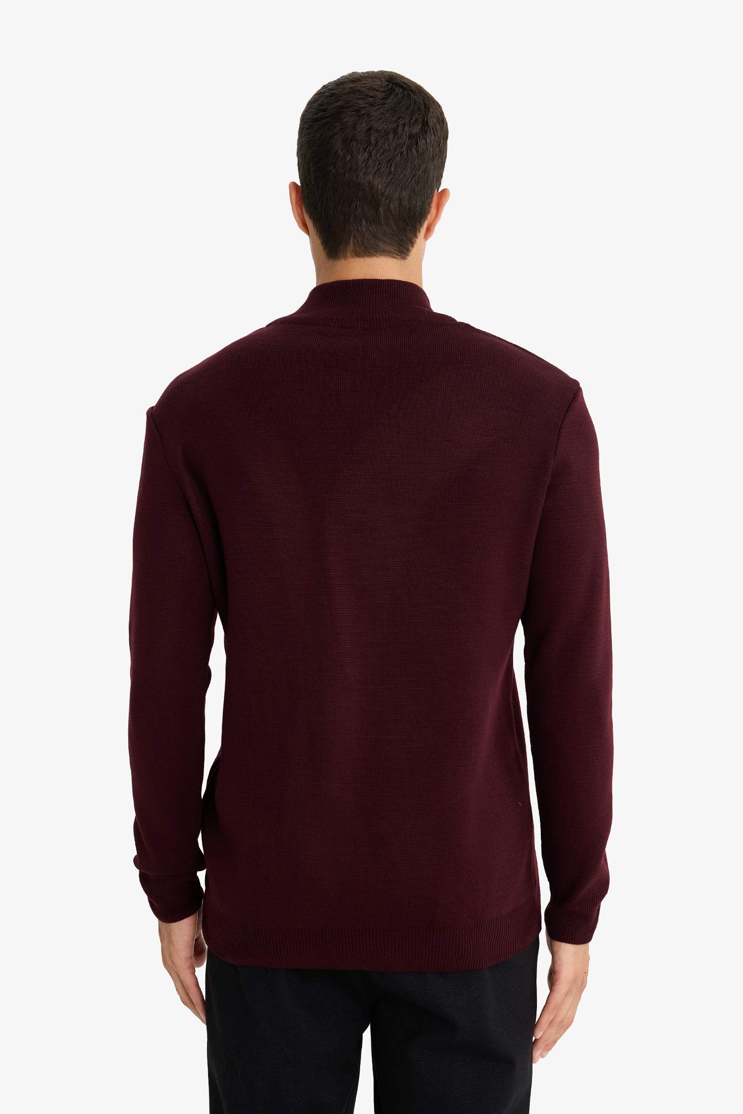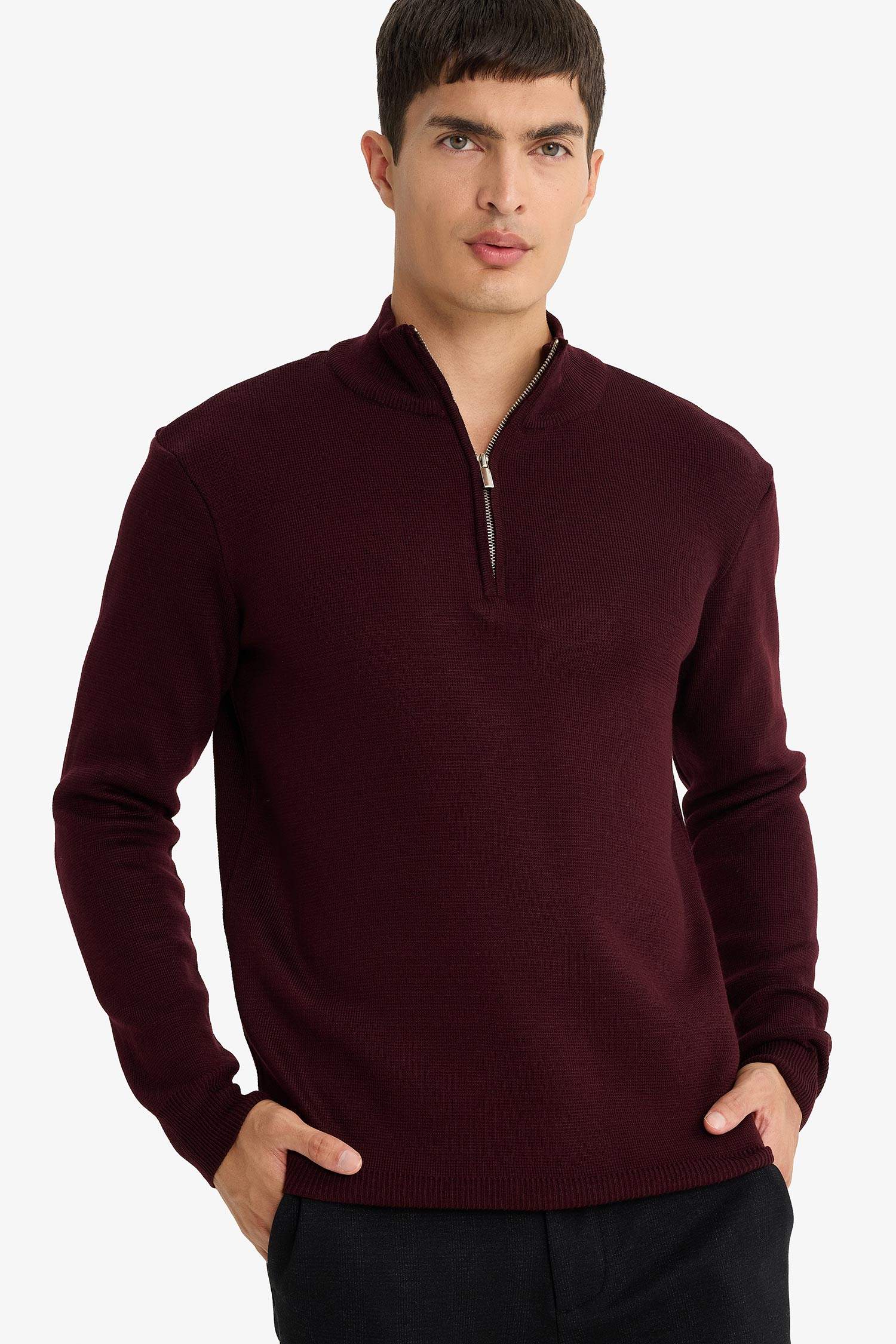 Standard Fit Regular Cut Stand Collar Half Zipper Basic Plain Knitwear Sweater
