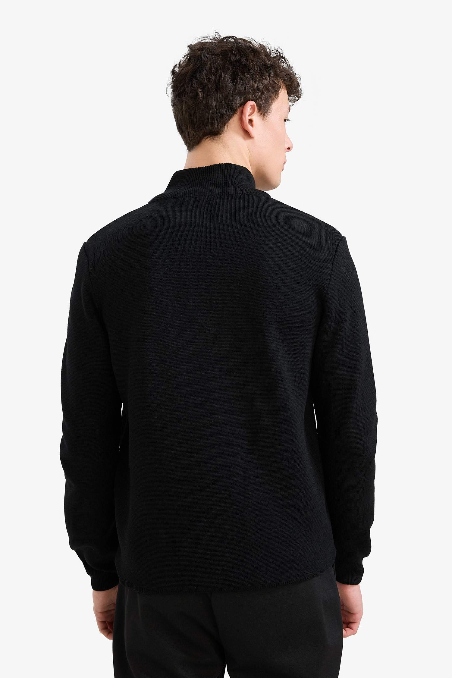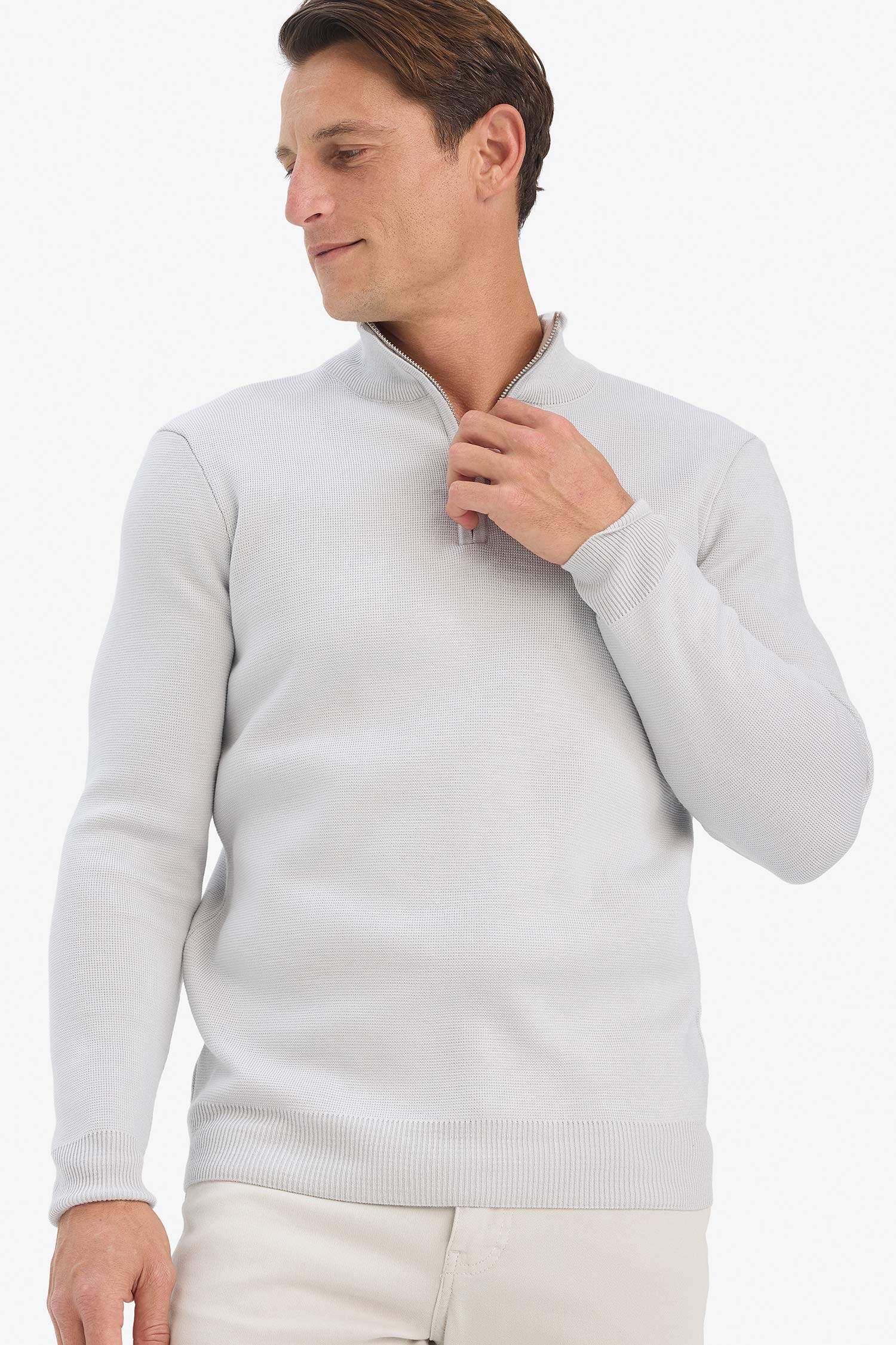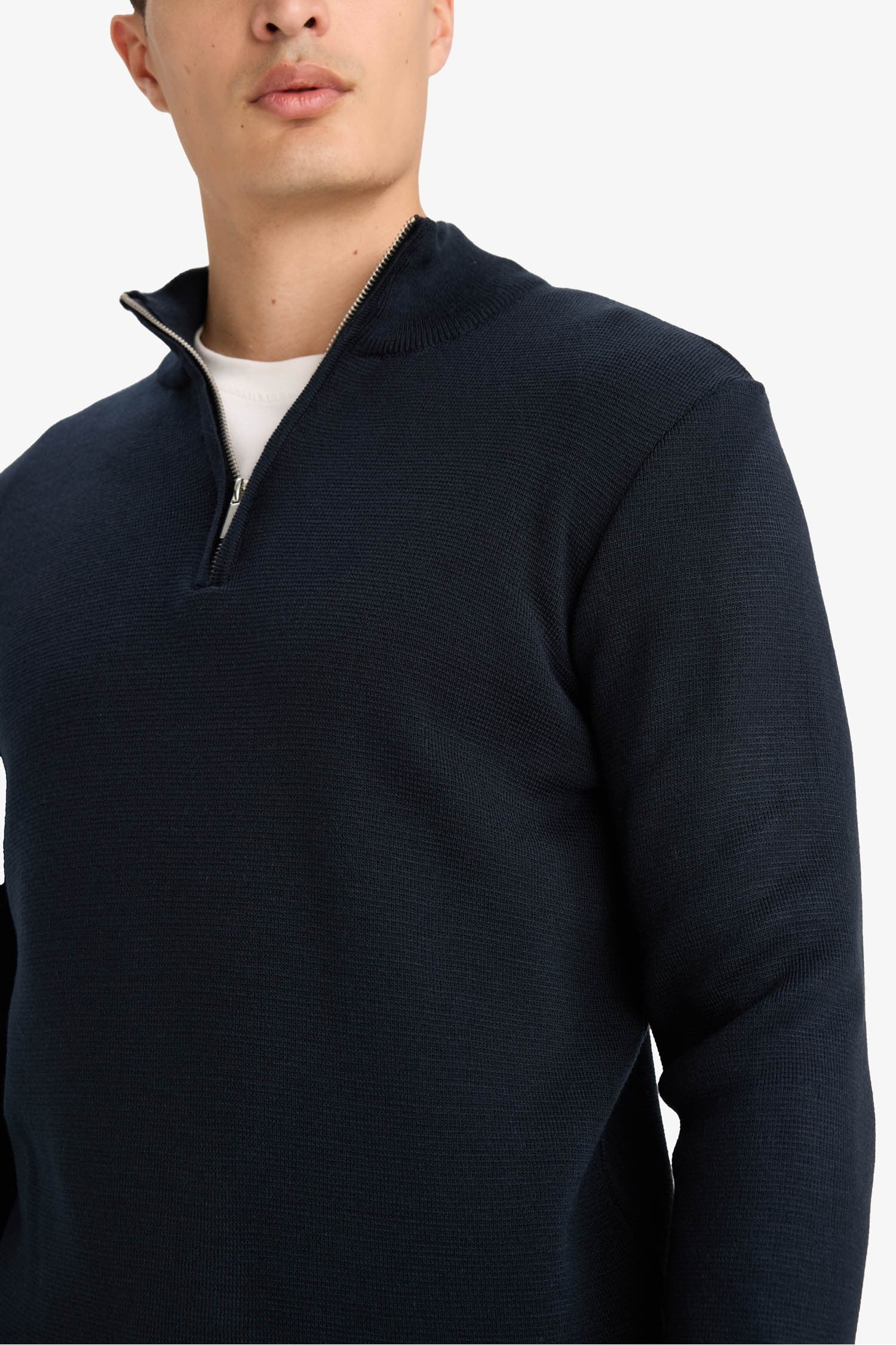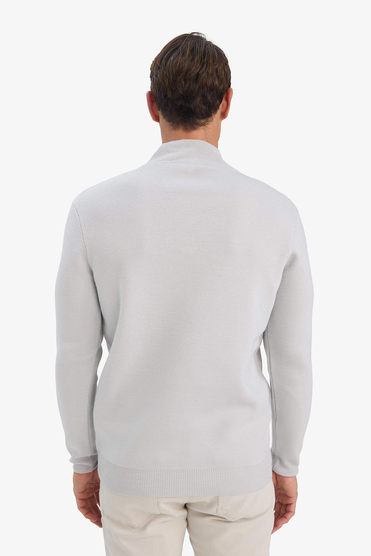Standard Fit Regular Cut Stand Collar Half Zipper Basic Plain Knitwear Sweater